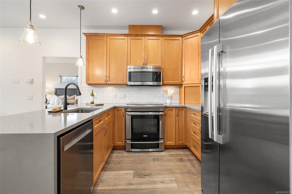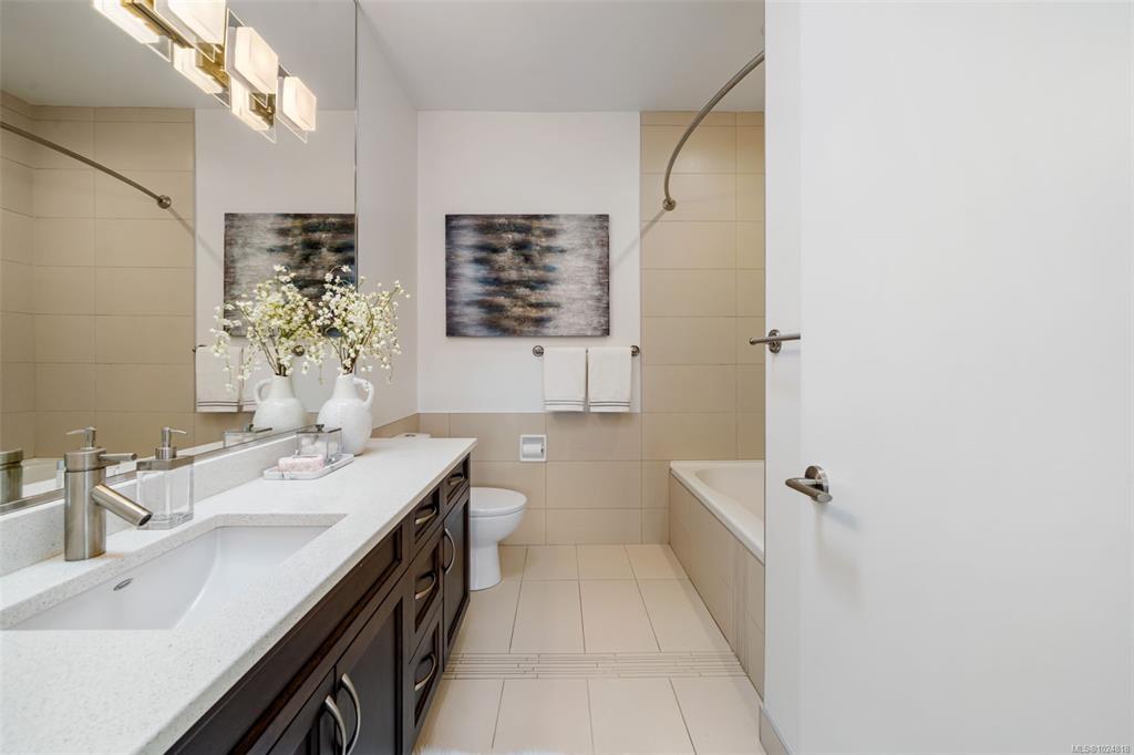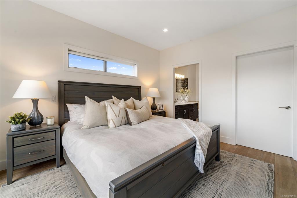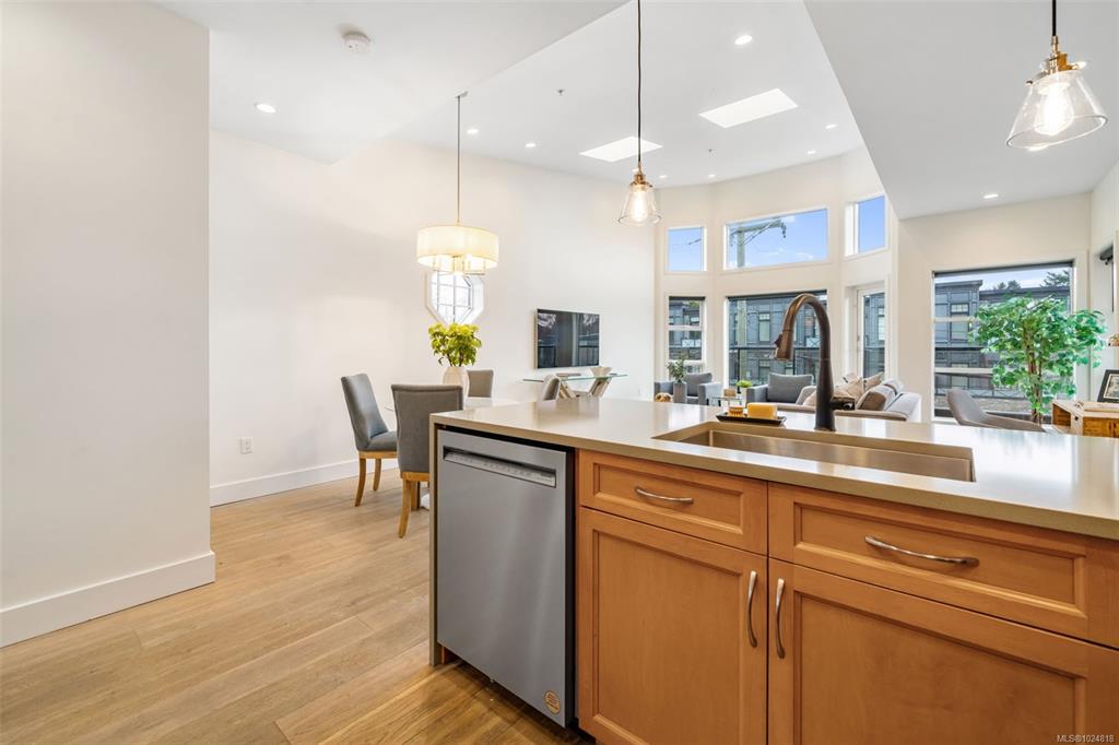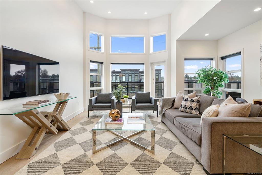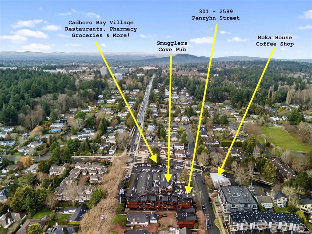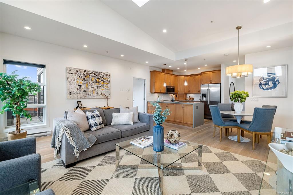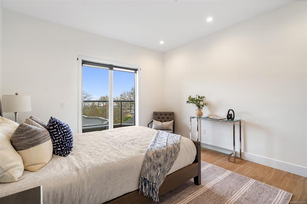 OPEN HOUSE SUN FEB 8TH 1-3! Located just steps from Cadboro Bay Beach & Cadboro Village, this bright & modern penthouse condo is the largest unit in the building, w/ nearly 1,200 sq ft of living space. This 2 bed, 2bth layout features a contemporary design w/ ceiling heights from 9 to 14 feet. The spacious primary bedroom includes a walk-in closet with built-in cabinetry and an ensuite. The main living areas feature hardwood flooring, while the open-concept kitchen is finished with stainless steel applianc...