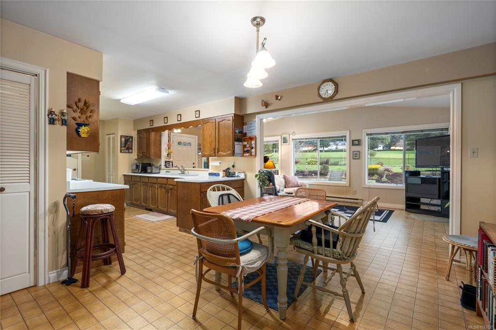 Welcome to this 1,850 sqft rancher with exceptional views in a sought-after Qualicum Beach location. Set on 0.43 acres backing onto the 7th tee of the Qualicum Beach Memorial Golf Course, this property offers sweeping ocean to coastal mountain views and stunning summer sunsets. Designed for easy one-level living, the home features a hardwood entry, formal living and dining room, and a spacious kitchen with maple cabinetry, walk-in pantry, breakfast bar, and adjoining flex space ideal for an office and famil...