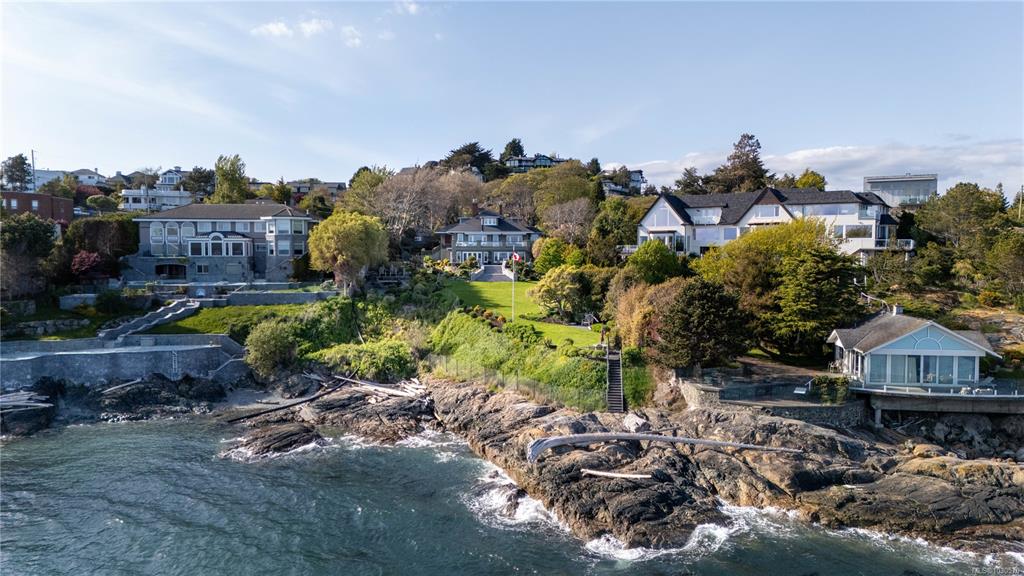 Experience timeless elegance at 261 King George Terrace, a remarkable south-facing waterfront estate in Oak Bay's prestigious Gonzales neighbourhood. Built in 1933 and set on over 0.8 acres, this exquisite home boasts panoramic views of the ocean, Trial Islands, and Olympic Mountains from nearly every room. Watch whales from your beautifully landscaped backyard, framed by incredible natural rockwork. Inside, the home offers the flexibility of one-level living on the main floor featuring a spacious kitchen, ...