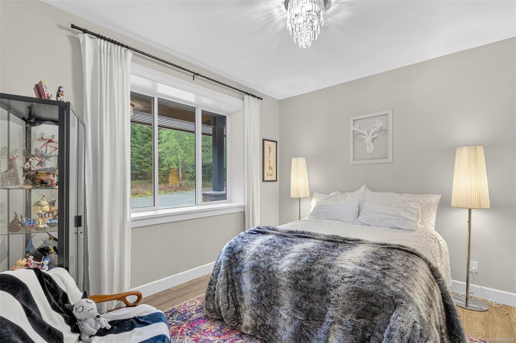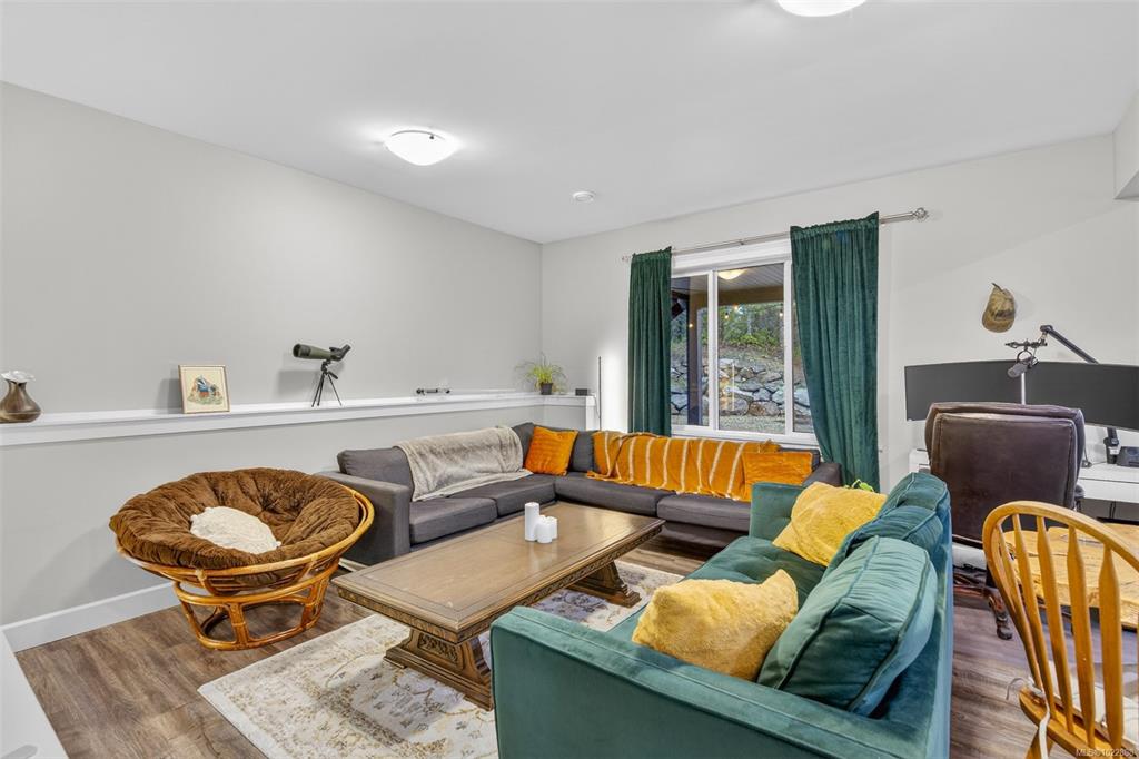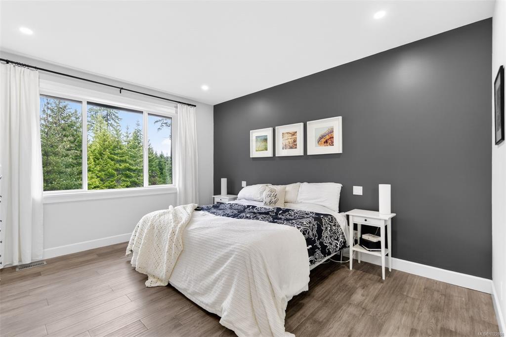 Enjoy home in this Enclave of Upscale Rural Homes. Each property here is approx. 2.5acres of mature timber, wild shrubs & flowers. Ease of parking w/a large double garage and outdoor spaces. An open plan is just right for large or intimate gatherings. A covered deck off the dining room invites you to sip tea or a glass of wine as you enjoy the morning or evening light. This main level accommodates the deluxe primary suite, 2 more generous bedrooms, full bathroom, laundry room & garage access. Downstairs are...