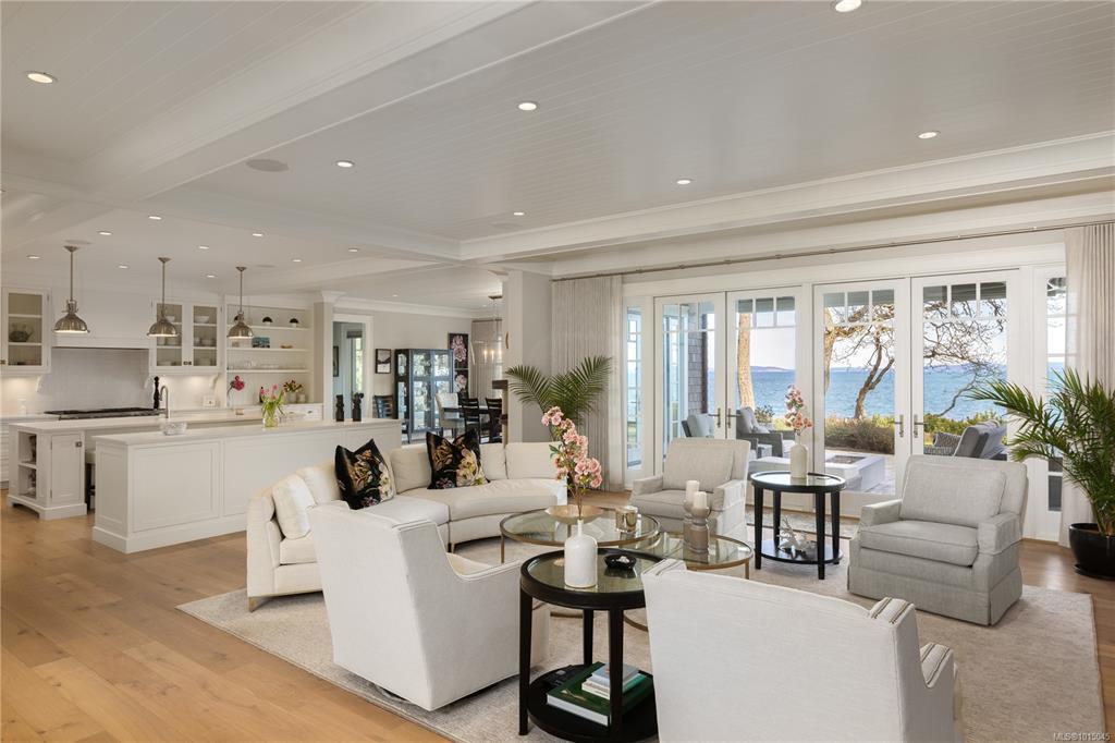 Nestled down a private lane, this oceanfront home blends modern coastal design with luxury. With views of the ocean & Mount Baker, it features a beautifully landscaped garden and paver driveway. Inside, white finishes, light oak accents, and chrome detailing create a bright, welcoming atmosphere. The spacious living room, with a cozy fireplace, opens to a private paver patio perfect for indoor-outdoor living. The chef’s kitchen includes a double island, butler’s pantry, and sleek Wolf appliances. The mai...
