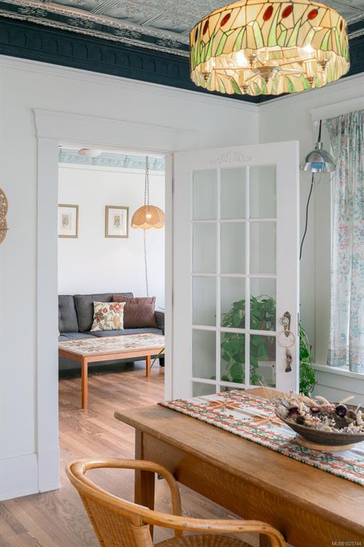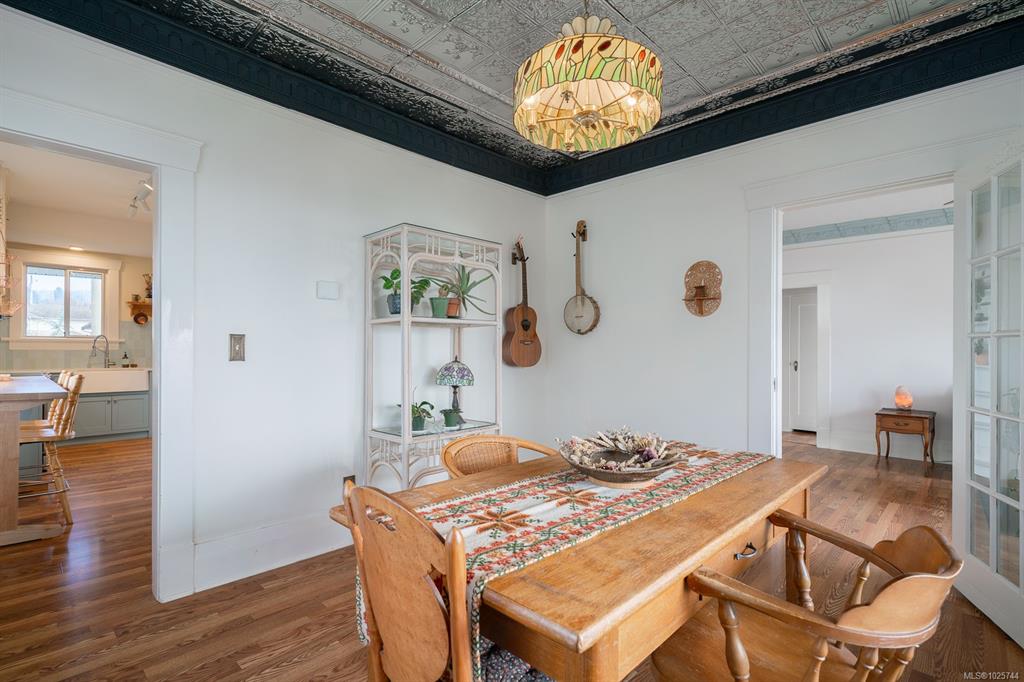 This lovingly updated character home is rich with warmth and timeless charm, featuring 9-foot ceilings and picturesque views of the Alberni Inlet. The inviting living room is anchored by a cozy wood-burning fireplace, while the formal dining room showcases an ornate tin ceiling. A thoughtfully updated kitchen offers ceiling-height cabinetry and a farmhouse sink. The main level includes a comfortable primary bed with walk-in closet, two additional well-appointed beds, and a full 4-piece bath. Upstairs, a spa...