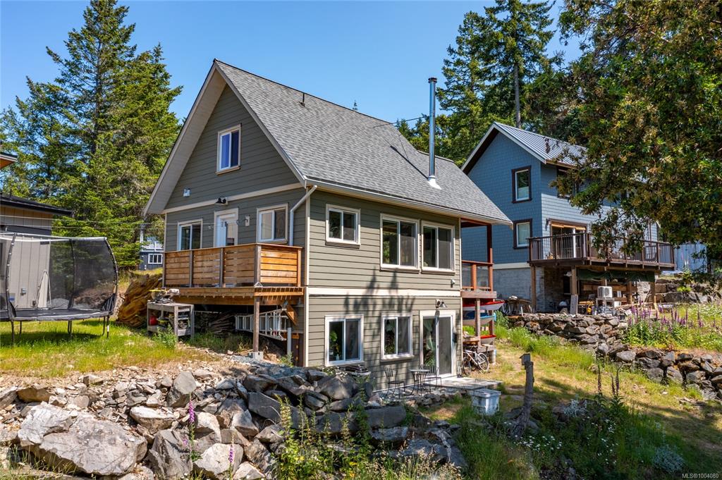 Discover peaceful Westcoast living in this custom-built, chalet-style, 4BR, 3BA home. Thoughtfully designed, it blends modern cottage vibes with timeless natural finishes - vaulted ceilings, broad windows & stunning exposed wood throughout. Perched on a sun-soaked, south facing property, the home offers lush green valley views with tranquil glimpses of the ocean. Step inside to an airy open-plan main level with 2BR & 1BA. Upstairs, find a private retreat with a spacious primary suite, office nook & bright 4...