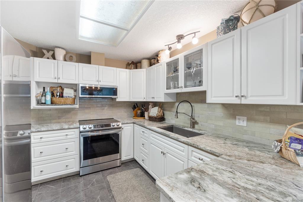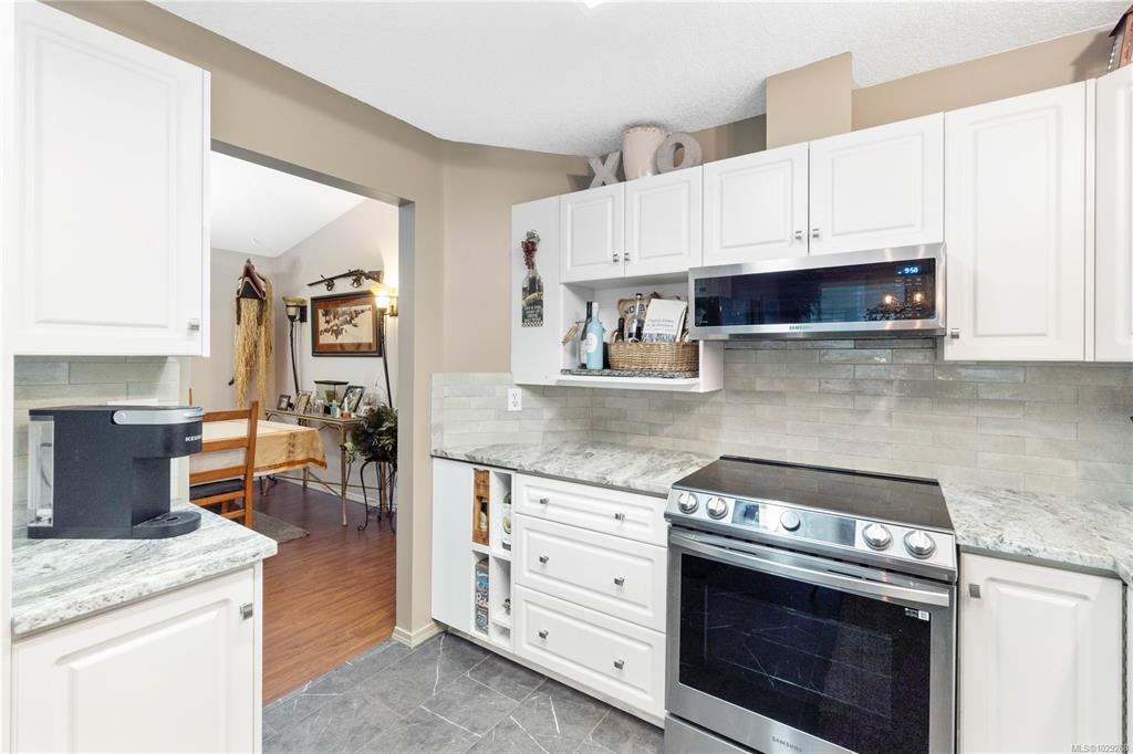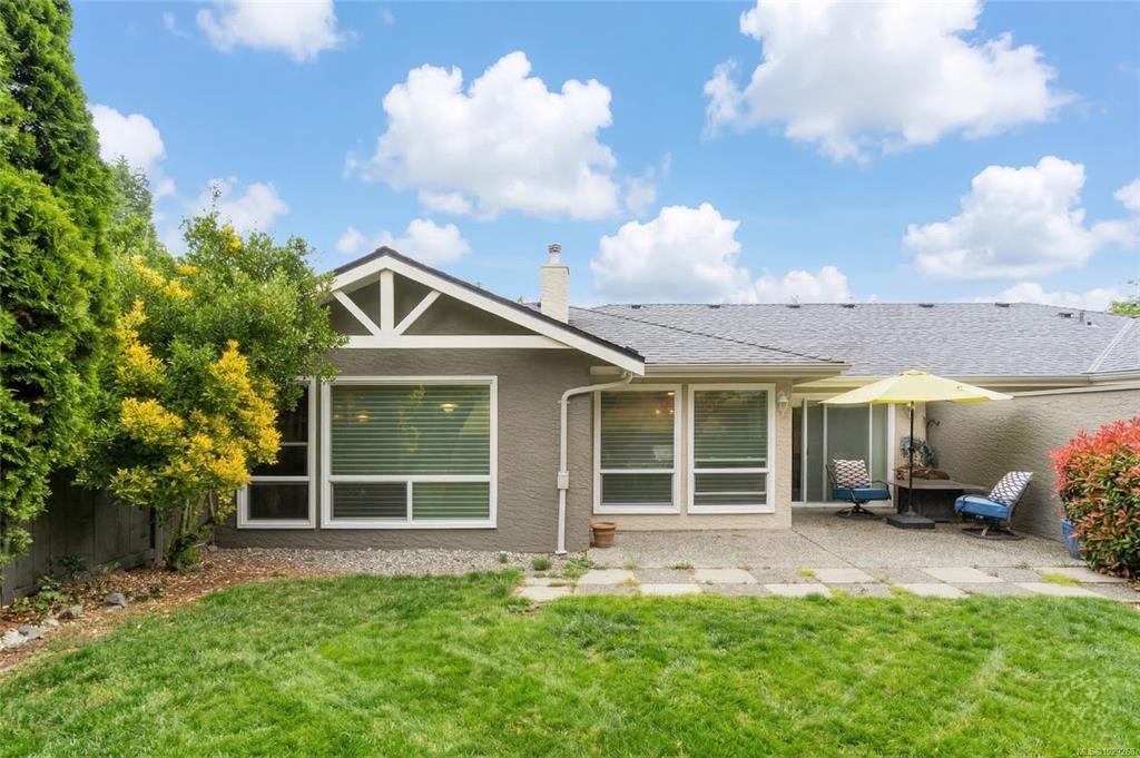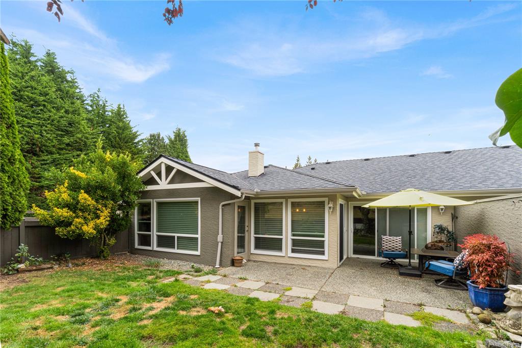 Discover easy living in this bright and spacious 1,685 sq ft patio home backing onto Glen Eagle Park—just minutes from Fairwinds Golf Course, the marina, rec centre, and scenic trails. Offering 2 bedrooms, 2 bathrooms, and a den, this thoughtfully designed home features a fully fenced yard and two private patios for year-round enjoyment. Vaulted ceilings and southwest-facing windows flood the living/dining area with natural light, while a cozy gas fireplace adds warmth and charm. The kitchen is beautifully ...