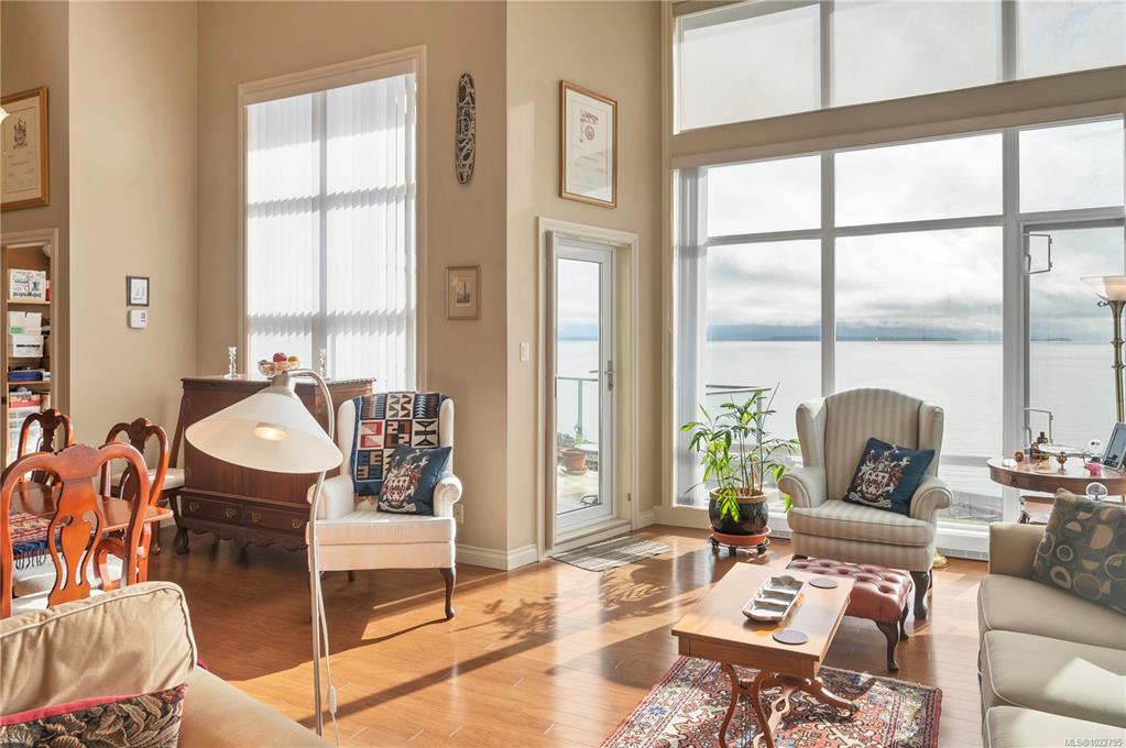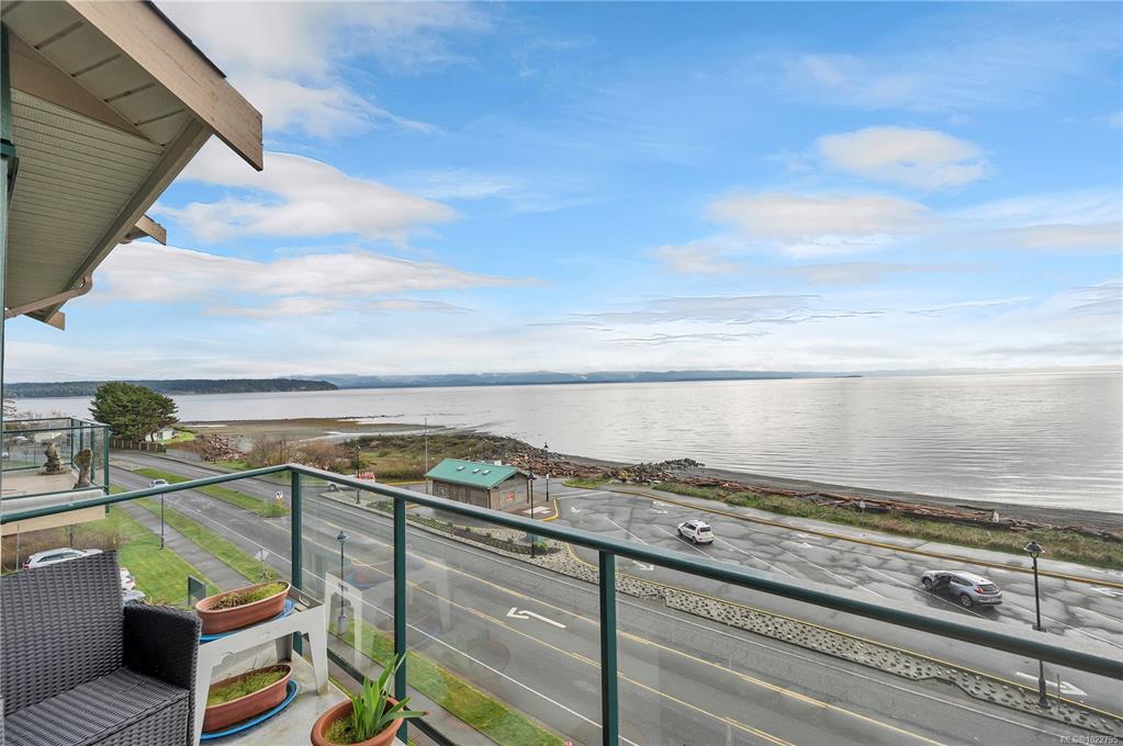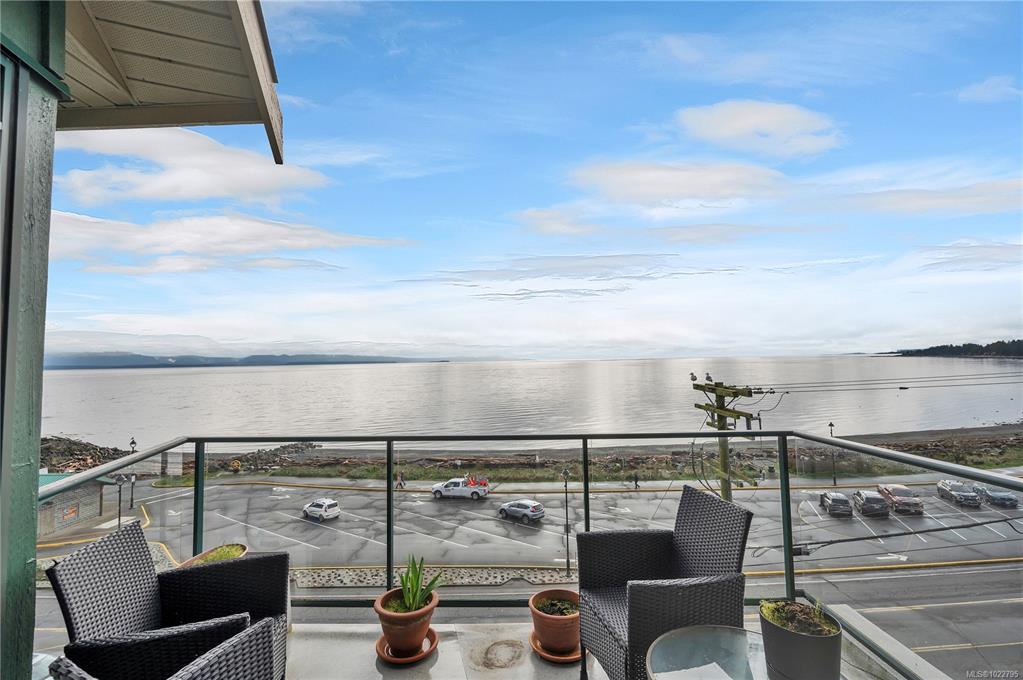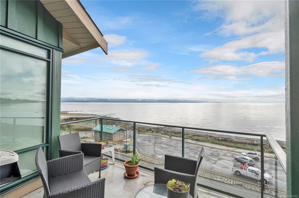 Seaside sophistication meets coastal charm! This beautifully appointed 3-bedroom, 2-bathroom condo in the coveted Willows Oceanside complex offers semi oceanfront living with stunning views of the Discovery Islands and passing marine traffic. Floor-to-ceiling windows flood the open-concept space with natural light, while rich hardwood floors, granite countertops, and maple cabinetry add warmth and elegance. The kitchen includes a handy island and flows into the living area anchored by a cozy gas fireplace...