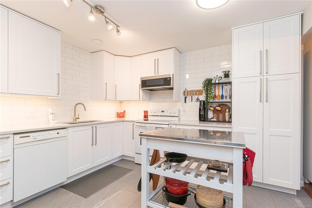 Nestled in the heart of the Inner Harbour, discover the epitome of urban living on a beautiful, quiet tree lined street. This spacious 2bed, 2bath home offers an unparalleled lifestyle. Enjoy the scenic Songhees Walkway, one of the most pleasant places in Victoria for a run or stroll, offering great views of the Inner Harbour, Strait of Juan de Fuca, and Victoria. This open concept home boasts a bright, renovated kitchen that shares a seamless layout with the living/dining area, feat: mixed use floors, a ga...