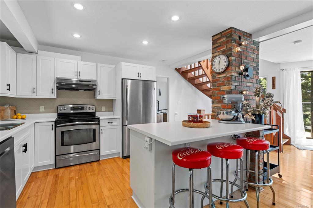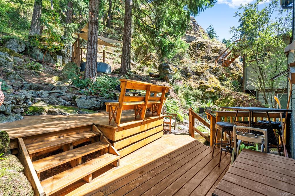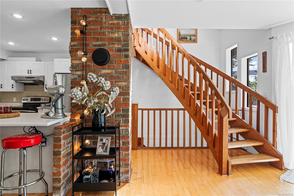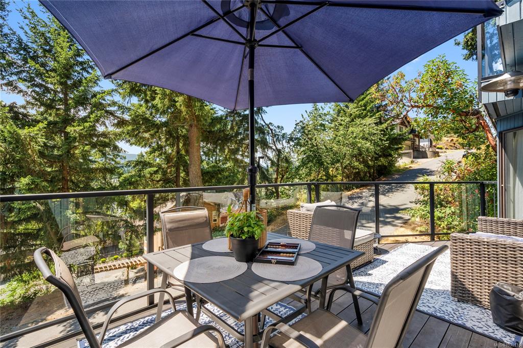This beautifully designed unique home offers views of Long Lake and a layout that blends functionality with West Coast charm. On the main level is an open-concept living space with hardwood flooring, a kitchen equipped with stainless appliances, and living room with access to the main deck. The primary bedroom also opens onto the deck and features a walk-in closet and three-piece ensuite. A curved custom staircase leads to the upper floor, where two bedrooms each enjoy their own private deck and share a fou...