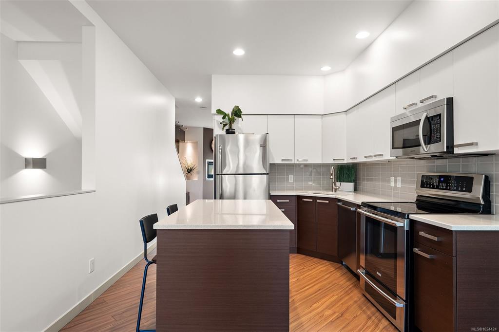 This beautiful 4 BEDROOM 3 BATHROOM townhouse has been recently refreshed and shows better than new. Built in 2011, this home has been meticulously maintained and is ready for a new family to enjoy. The smart layout offers a garage, carport and bedroom/office on the ground floor. The main floor has a large gourmet kitchen, in line dining room overlooking your private patio, a good size living room with fp and a 2 pc bath. Upstairs you will find 3 good size bedrooms including a large primary bedroom with soa...