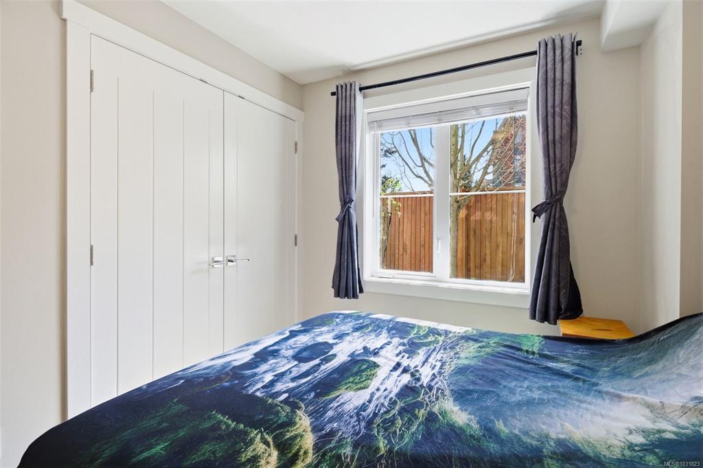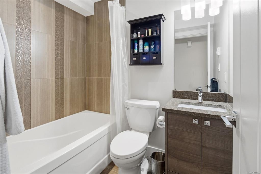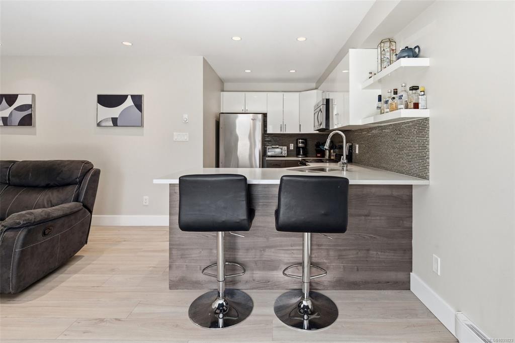 Welcome to Arbutus Townhomes. This incredibly rare, single level condo-style townhome is located in the heart of the Westshore - just steps to all desired amenities, parks, and transportation. This accessible garden level suite offers a great open concept floor plan with no wasted space. Chef’s kitchen complete with stainless steel appliances, quartz countertops, and an eating bar. Spacious living/dining room features an electric fireplace and built-in shelving. Nice sized bedroom, in-unit laundry and a 4pc...
