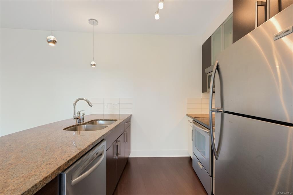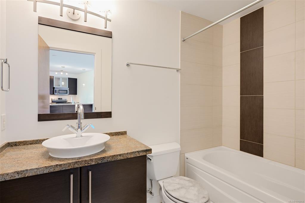 Modern two bedroom two full bathroom condo at Reflections in the heart of Langford for $479,900! High ceilings, open concept design and west facing with floor-to-ceiling windows for great natural light and spacious feel. Durable steel and concrete construction built in 2008 for peaceful day to day living. Ideal bedroom separation and each bedroom has it's own full bathroom for privacy. Quality kitchen with granite, bar seating, stainless steel appliances and insuite laundry. Unit comes with secure undergrou...