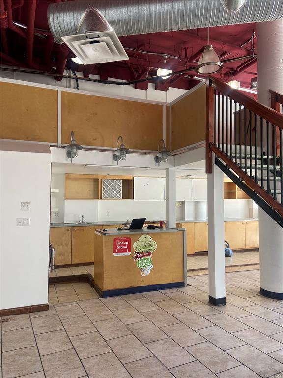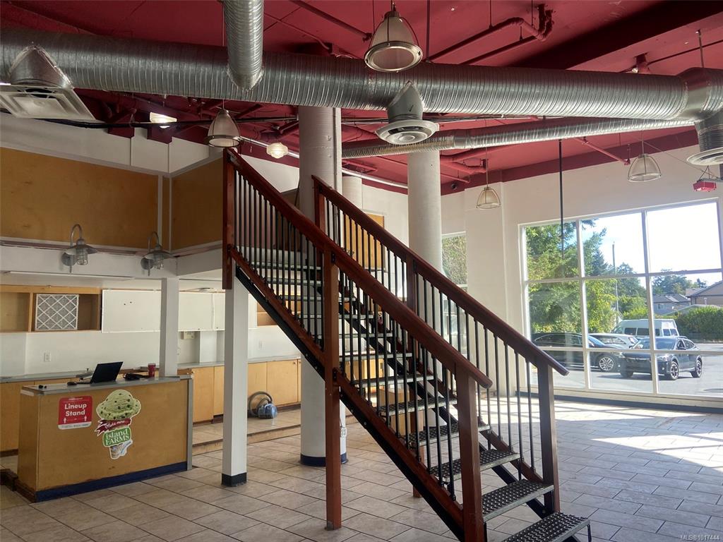 Corner location on Veterans Memorial Parkway with high exposure. Floor to ceiling windows, high ceilings and sprinklered. There is 2 piece washroom and plumbing along the back wall with 3 existing sinks. The previous use was a coffee shop and take out with grocery sales. The space is not vented for a full restaurant but it is exhausted and would support uses that do not require full kitchen venting. Area includes a finished mezzanine. There is excellent customer parking adjacent to the premises.