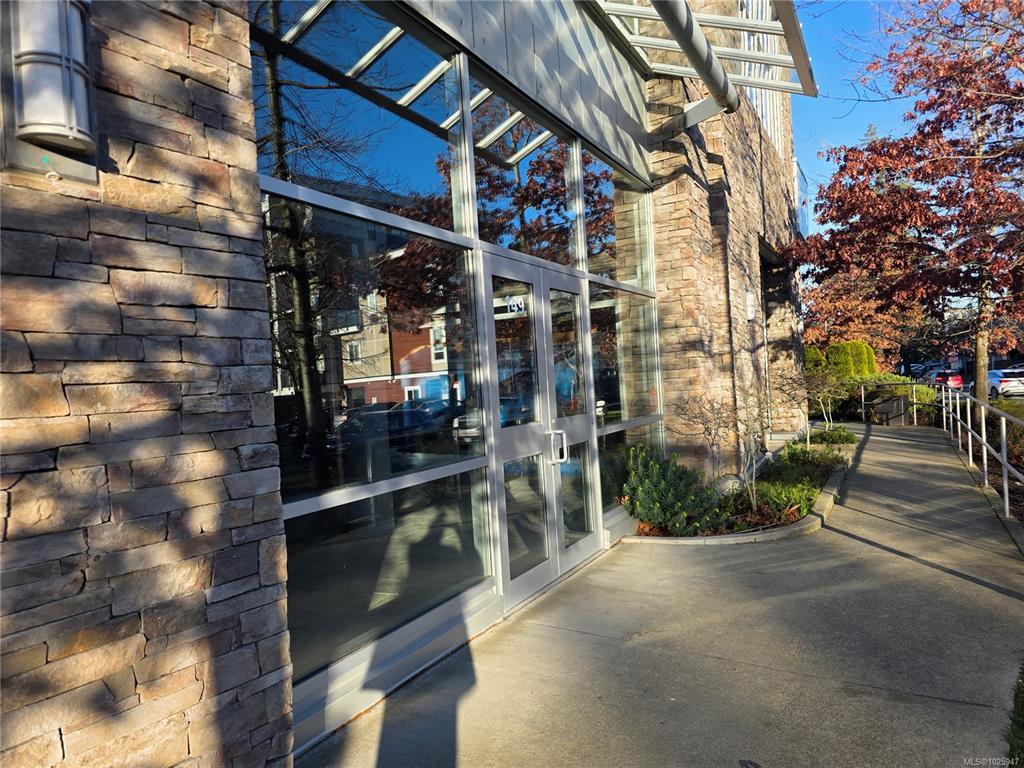 Retail/office space for sale in prime Langford location. This Reflections building is ideally situated on the corner of Veterans Memorial Parkway, with an attractive storefront and terrific exposure. Ample tenant improvements include steel mezzanine, add'l washroom, tile flooring, fresh paint, tons of hydro, oversized windows, and more. Main Floor 1,471 sq.ft. and Mezzanine 600 sq.ft. Good customer parking available.