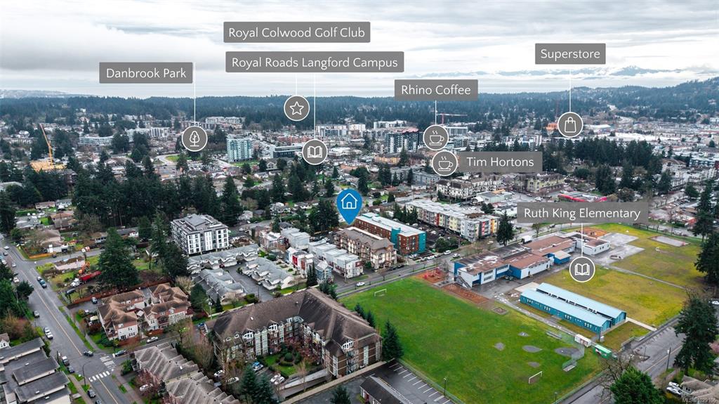 Open House Saturday, March 21, 2:00-4:00PM. Welcome to Jasmine Place in the heart of Langford—a truly walkable neighbourhood that is worth viewing. This third-floor corner unit features a bright open-concept layout with 9-foot ceilings and large windows that fill the space with natural light. The kitchen flows seamlessly into the dining room and and living room areas, perfect for relaxing or entertaining, while a cozy fireplace adds warmth and charm. Enjoy the convenience of in-suite laundry in a laundry ro...