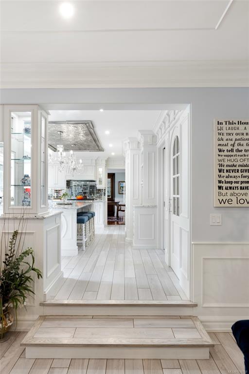 A stately stone ext. French Country Manor in prestigious Wedgewood Point on Ten Mile Point. This luxurious home features a blend of timeless design, craftsmanship & comforts of modern living. Backing onto Benson Park, enjoy peace, privacy & nature on this 1/3 acre of lush landscaped grounds w/stone pathways, raised & irrigated veggie/fruit gardens, deck, covered patio & hot-tub, bathed in SW light. Inside, architectural interest abounds w/custom cabinetry throughout; coffered ceilings, wainscotting & disti...