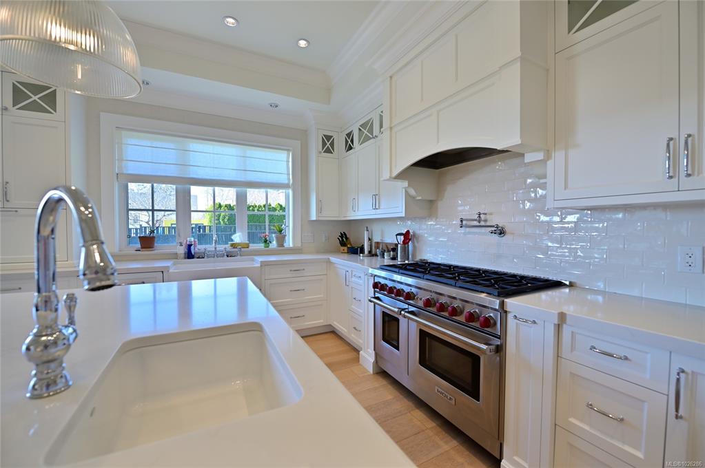Oak Bay Mini Mansion! This exceptional 2019 built home is situated in the one of the most desirable neighbourhoods of Victoria, easy walk to Uplands Park, Willows Beach and Estevan Village. Custom designed throughout with outstanding finishing and superior attention to detail boasting 10ft ceilings on main and upper levels, chef’s kitchen with beautiful appliances, 5 bdrms, an office and 6 baths elegantly assembled over 4779 sq ft. The light Oak flooring weaves its way throughout the home. The Butler’s pant...
