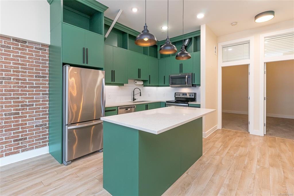 Incredible Live/Work Opportunity! This unique property combines home and business with flexible BT1 zoning and excellent visibility, minutes from Hwy 1 and downtown Langford. The ground level offers a commercial space with entry foyer, large overhead door, 2-piece wheelchair-accessible bathroom, and a gas furnace for efficient heating. The shop is well-suited for a wide range of uses, including those requiring 3-phase power equipment. Upstairs, the modern 2-bed/1-bath suite features an open layout, stylish...