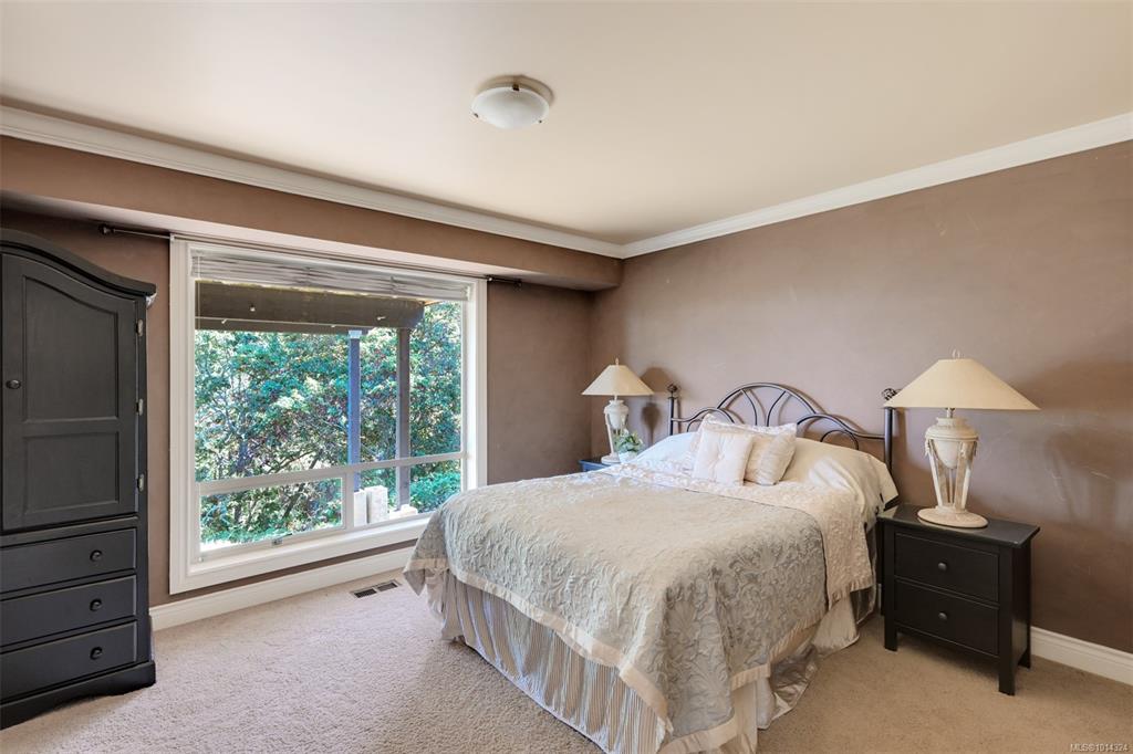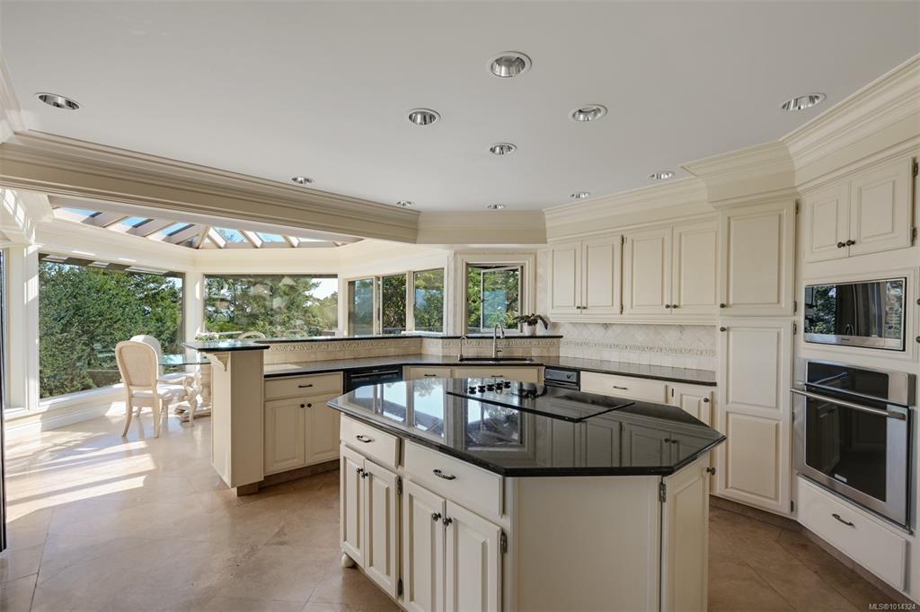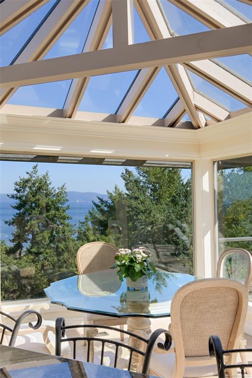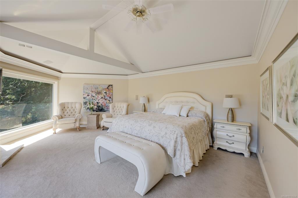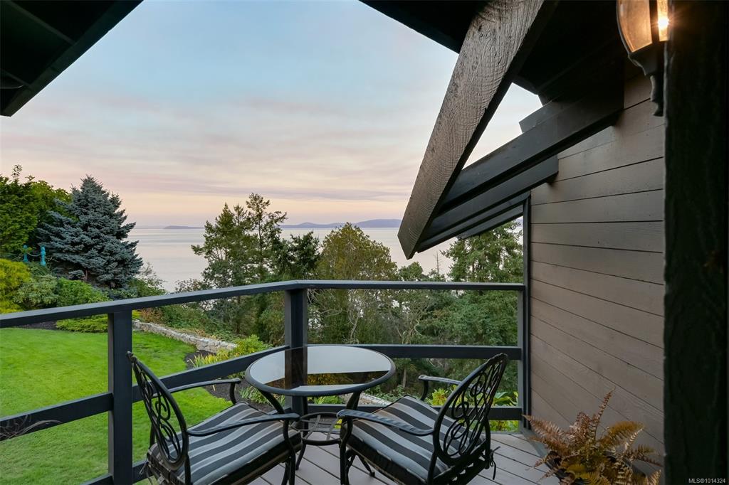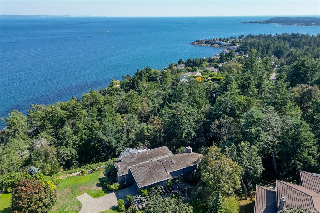 Privately set behind gates on one of the most exclusive lots in Wedgewood’s Ten Mile Point, this custom-built 1984 home sits on over half an acre, backing onto Phyllis Park with ocean views. The main living area features vaulted ceilings and oversized windows that capture natural light and treed privacy, while the kitchen connects to a sun-filled solarium with gorgeous views. A dedicated dining room is perfect for entertaining with direct access to the deck. The primary suite offers a private deck, fireplac...