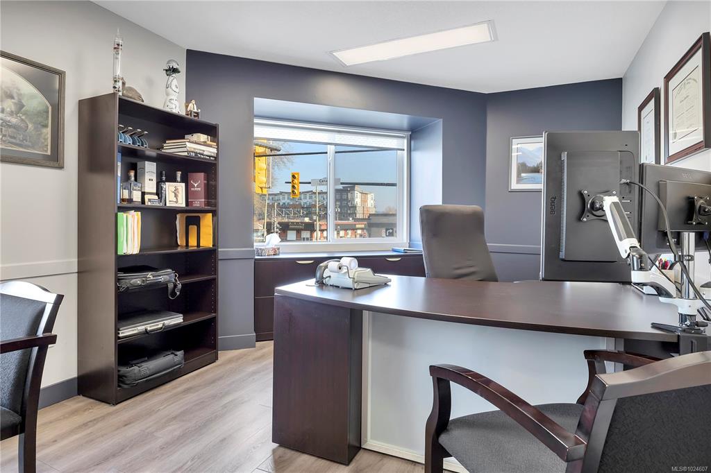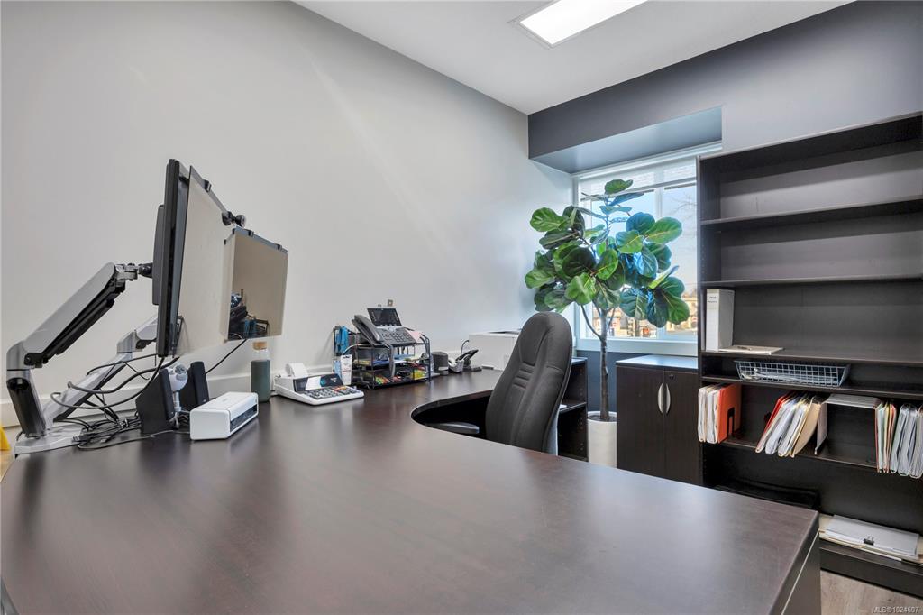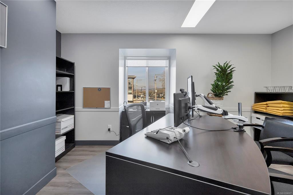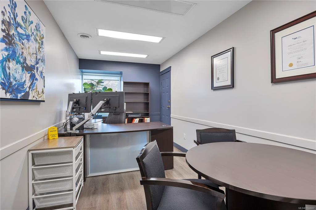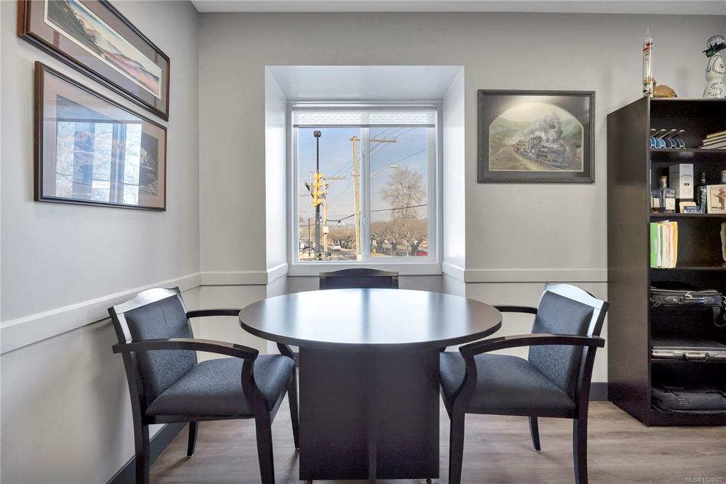 Updated and move-in ready office space just under 1,400 sq. ft. in the heart of downtown Duncan. An ideal location for signage and advertising within the main intersection and street of the downtown core. Located on the highly visible and high-traffic corner of Canada Ave. and Ingram St.. The bright unit features a striking live-edge reception area, five well-sized private offices, a dedicated reception space, waiting area, filing room, and kitchenette. Large windows provide excellent natural light througho...