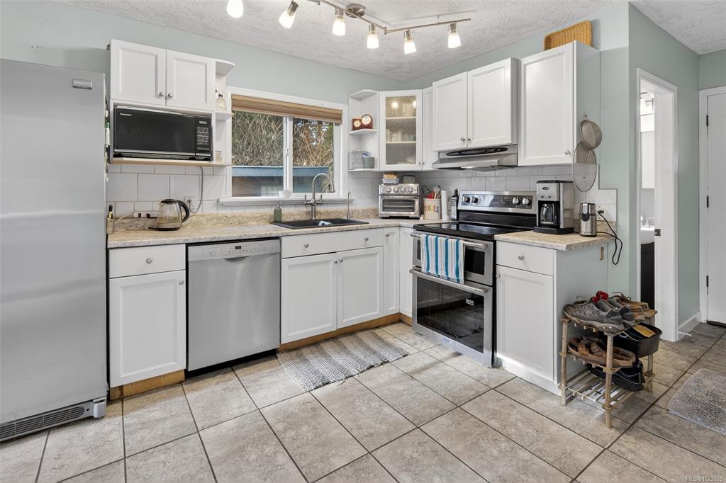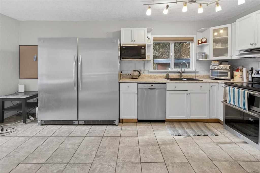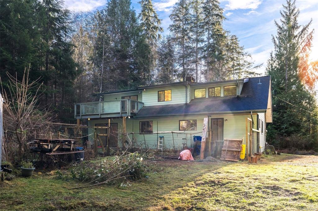 20 Minutes west of Sooke siting on a pretty & private lot! This 2027 sq ft 3 bedroom 2 bath home needs paint & flooring-windows are original-roof is older. Very unique home on a magical .97 of an acre-just waiting for some cosmetic updates. Kitchen has higher end appliances...many rooms w/ custom blinds. Main level has living rm w/ wood fireplace, dining area, nice sized eat in kitchen, large utility/laundry area (perfect for pets, crafts or a place to store your canning), 4 piece bath & 1 bedroom-great for...