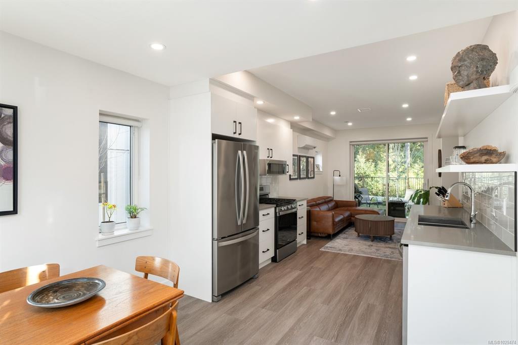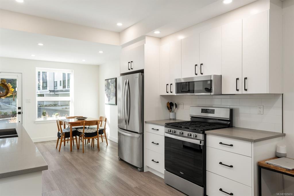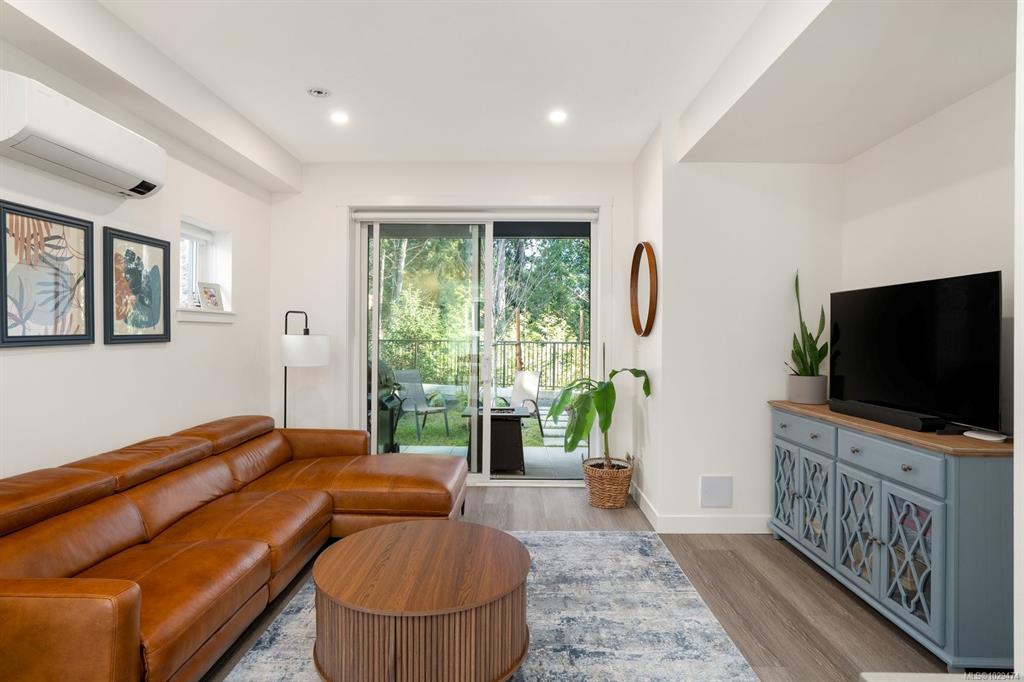Tucked at the end of a quiet cul-de-sac, this 2024-built corner unit townhouse offers rare privacy, backing directly onto green space and Langford Lake. Extra windows flood the open-concept layout with natural light, creating a bright, welcoming space for everyday living and entertaining. The well-designed 2 bedroom, 2 bathroom plan is ideal for first-time buyers or those seeking a condo alternative without shared hallways or elevators. Step outside to a deep, private patio surrounded by nature—perfect for ...