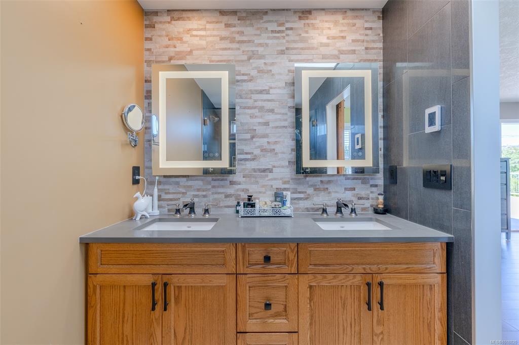 Set in a quiet, private neighborhood, this beautifully updated sunny Departure Bay home blends comfort, style, and energy efficiency. Inside, enjoy hardwood and engineered hardwood throughout, with heated tile in the kitchen and ensuite. The bright kitchen features quartz countertops, stainless steel appliances, and a central island—ideal for entertaining. The main level includes a bedroom, full bathroom, and laundry, while upstairs offers three additional bedrooms—including a spacious primary suite wit...