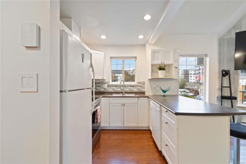 IMPROVED PRICE! Brimming with charm and convenience, this 2-bedroom, 3-story townhome sits in the heart of Langford—steps from cafés, restaurants, and shopping. This bright corner unit has been freshly painted and features a new backsplash, hard surface floors, and an updated bathroom for a clean, move-in ready feel. The main level offers soaring vaulted ceilings, an eat-up kitchen bar, smart storage, a bedroom, and a full bathroom. Upstairs, the loft-style primary suite overlooks the living area below, cre...