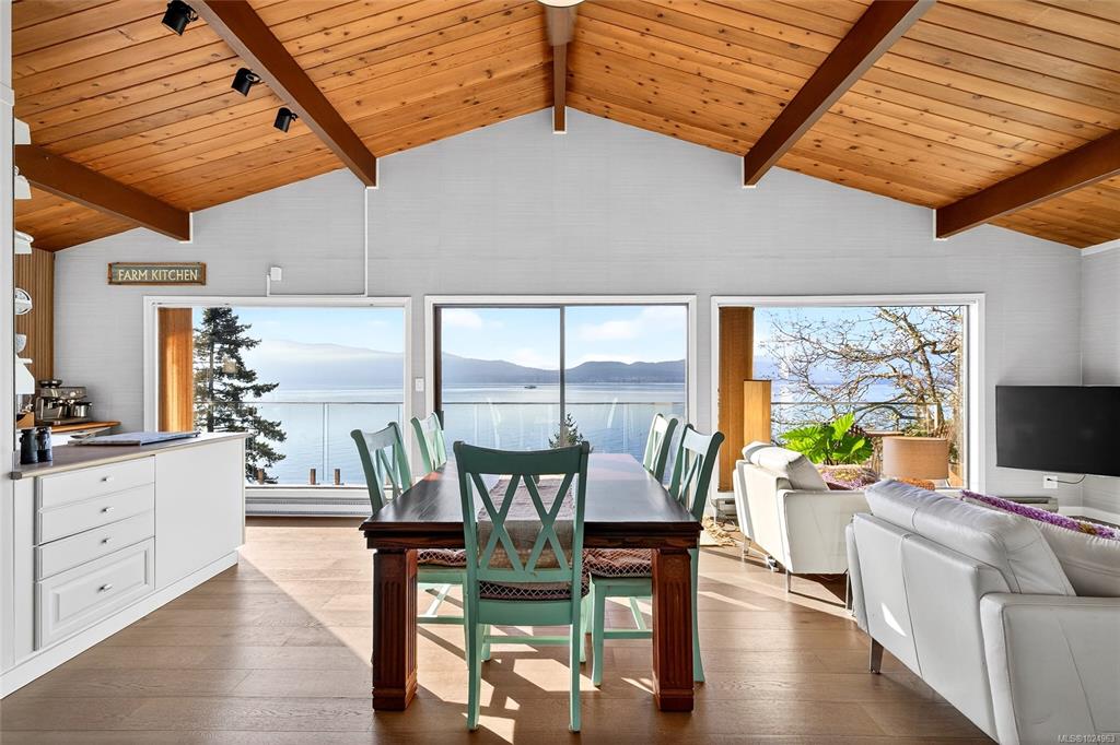 Awaken to the sparkle of sun on the ocean and end each day with glowing west-facing sunsets. This retreat on a rare level 0.81-acre waterfront lot is more than a home, it is a way of life in a sunny cherished location. West Coast design with vaulted ceilings and open feel. Beautifully renovated throughout with nearly completed lower level. NEW metal roof, flooring, windows & doors, and wiring. Newly constructed deck with glass railings invites you to watch whales, seals & birds year-round. Breathe the fresh...