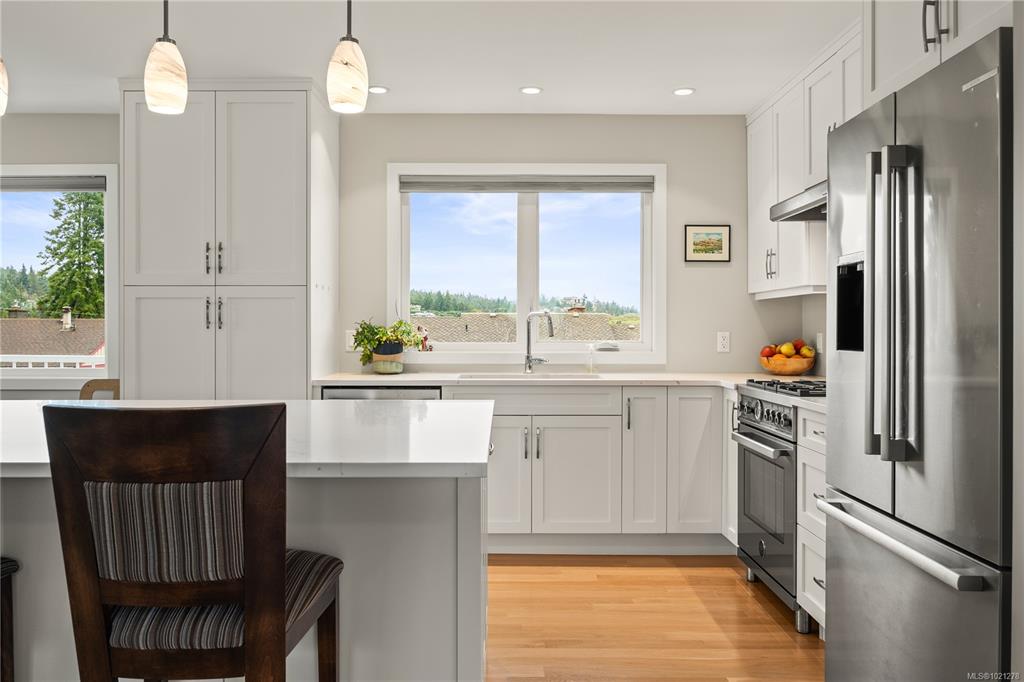 Discover this updated four-bed, three-bath home in the heart of Departure Bay, offering stunning ocean views and an unbeatable location. With just under 2,400 sq ft of thoughtfully designed living space, this home features gorgeous hardwood flooring and high-end finishes throughout, creating a warm, modern, and timeless feel. Enjoy impressive upgrades including a gas furnace, hot water on demand, air conditioning, and solar panels that help keep monthly utility costs remarkably low. The main living area is ...