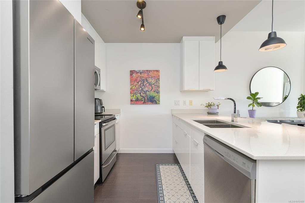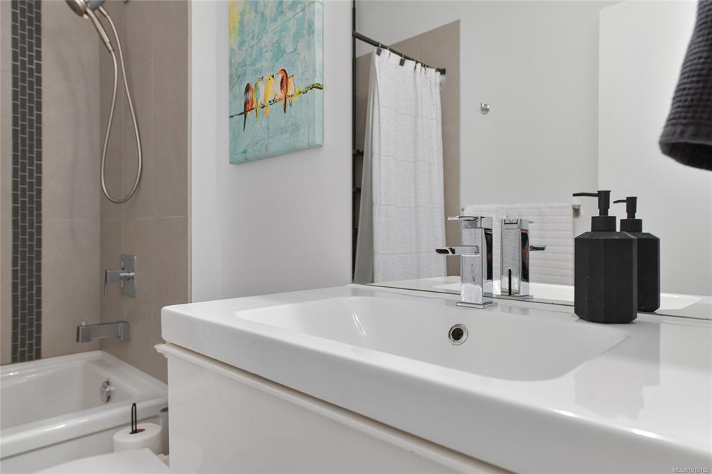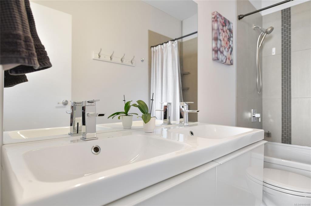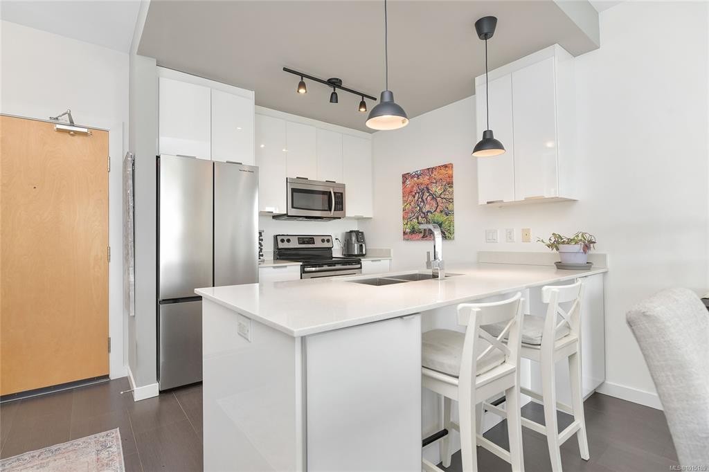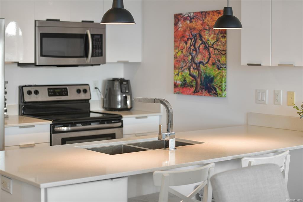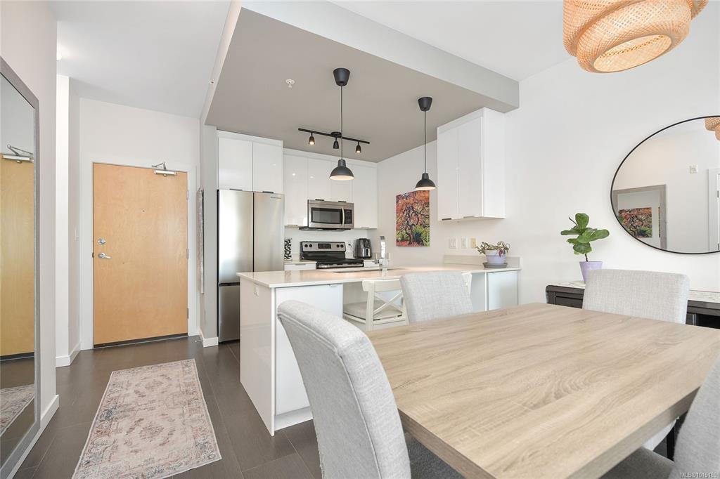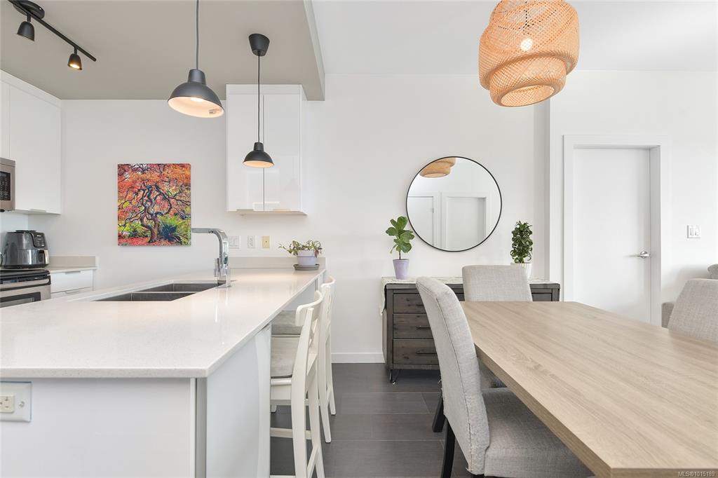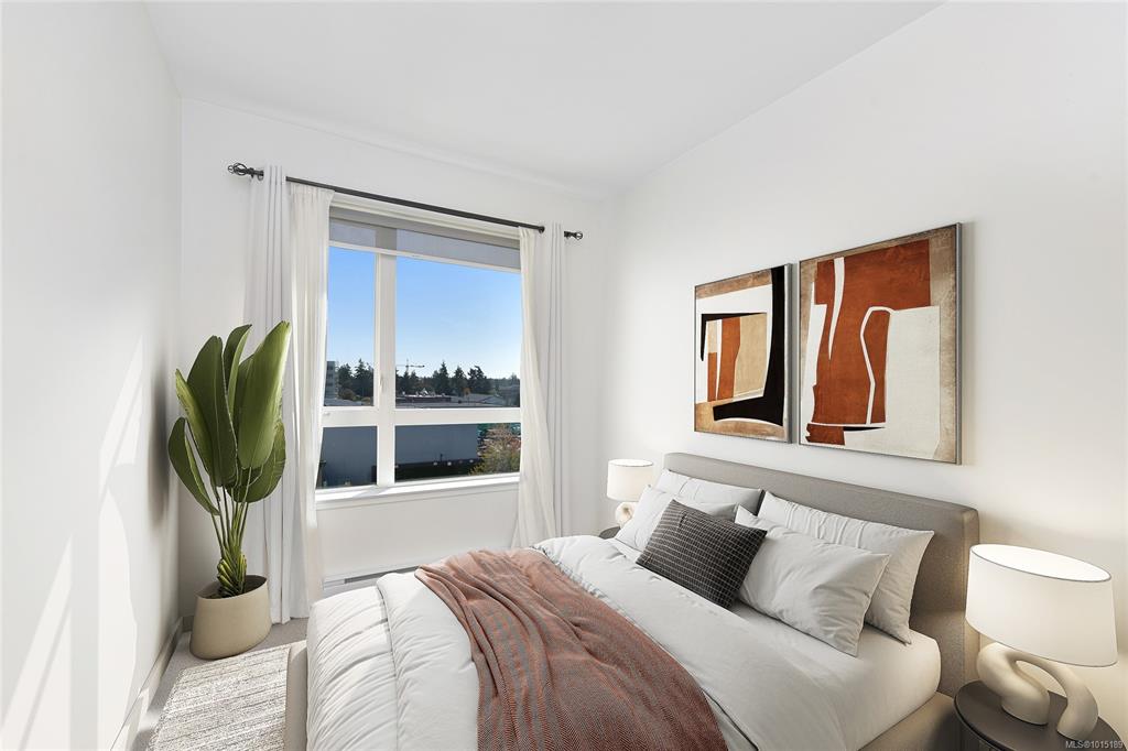 TOP FLOOR TWO BEDROOM PLUS 2 BATHROOM UNIT! Prepare to be impressed by this stylish condo with many great features including an open concept floor plan, primary bedroom complete with walk-in closet plus 5-piece ensuite with heated floor, private covered deck, built-in pantry, spacious washer/dryer room, Modern kitchen complete with quartz countertop and upgraded fridge plus dishwasher, heat pump, Moen faucets and 4-piece bathroom. The Utopia building is conveniently located in the City of Langford close to ...