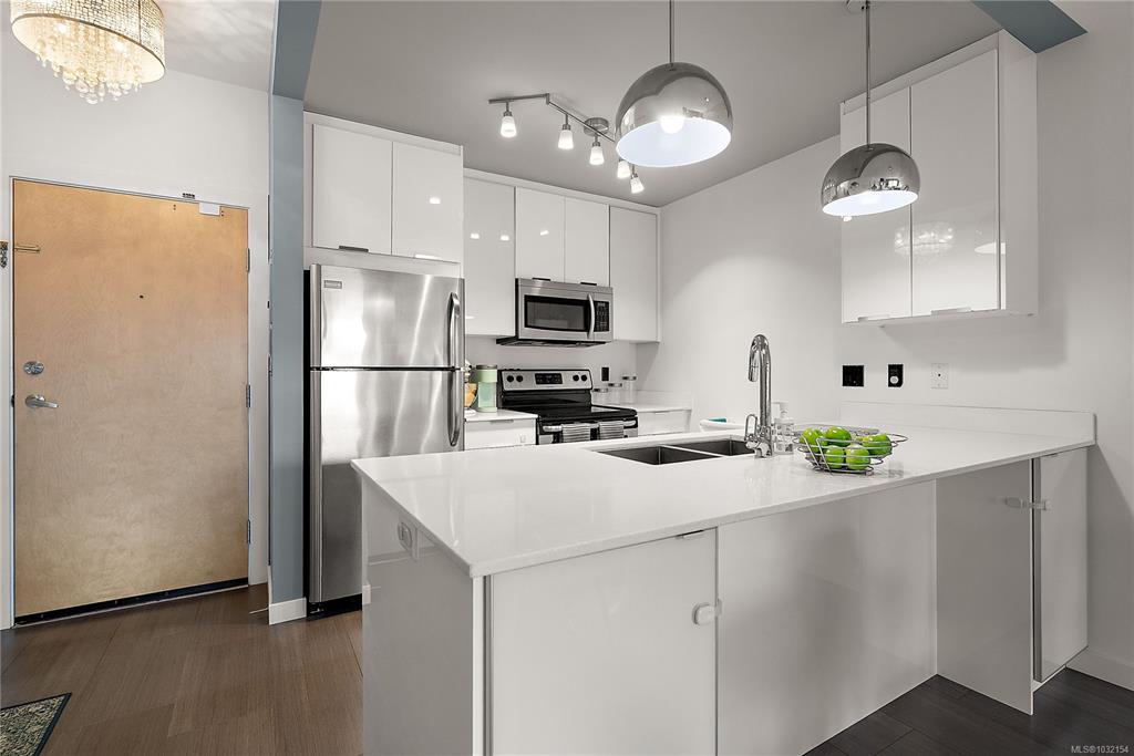 Stylish and modern 2-bedroom condo in the sought-after Utopia residences, perfectly located in the heart of downtown Langford. This well-appointed 681 sq/ft home features a smart, open-concept layout with 9’ ceilings, sleek laminate flooring, and a contemporary kitchen complete with quartz countertops, stainless steel appliances, soft-close cabinetry, and an eating bar. Enjoy year-round comfort with an energy-efficient heat pump and outdoor living on the desirable corner (covered) balcony which is perfect f...