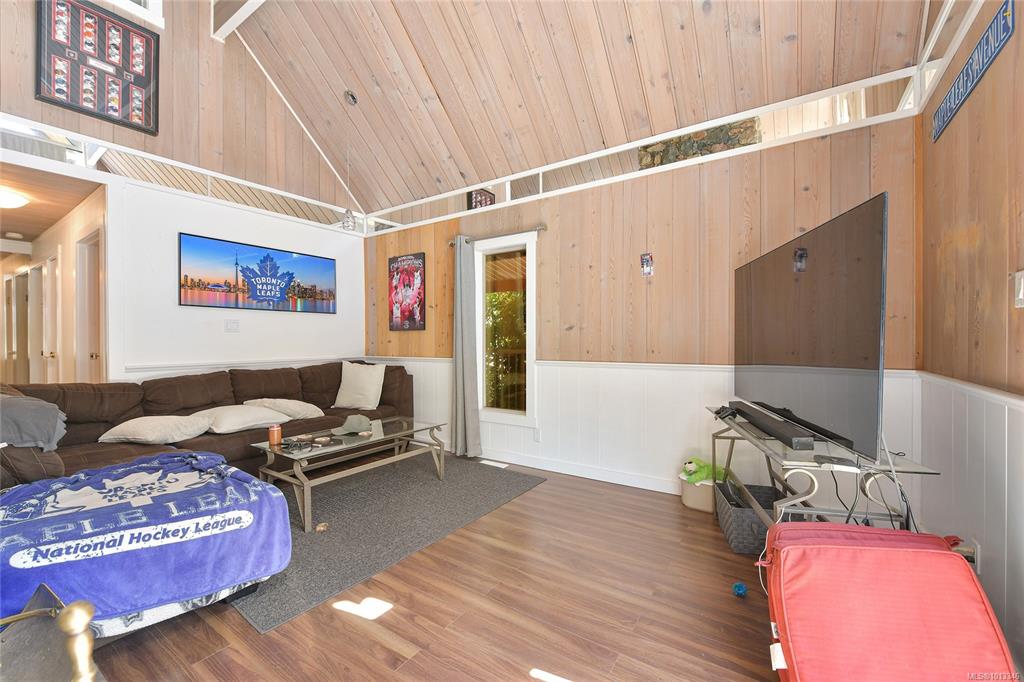 Your lakeside escape awaits. Positioned on the sun-drenched south end of Langford Lake, this west-facing home pairs privacy with an effortless lifestyle. From your backyard, stroll a private path through established gardens to the public dock, an inviting spot for morning swims, afternoon paddles, or evening sunsets. A large detached shop offers endless possibilities for hobbies, storage, or workspace, while the flexible floor plan includes a self-contained suite—perfect for guests, extended family, or rent...