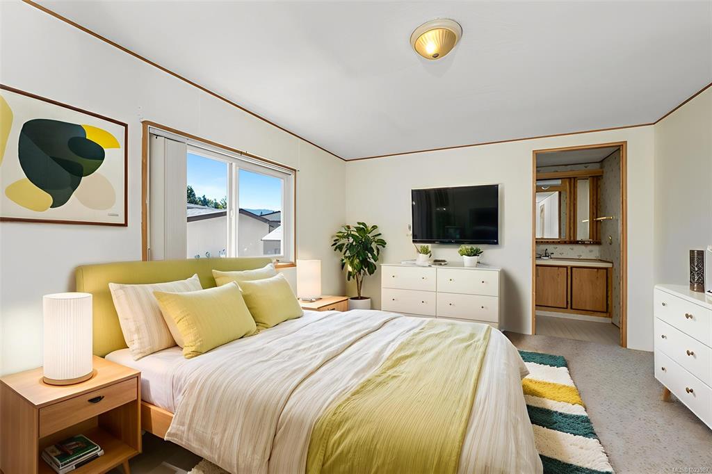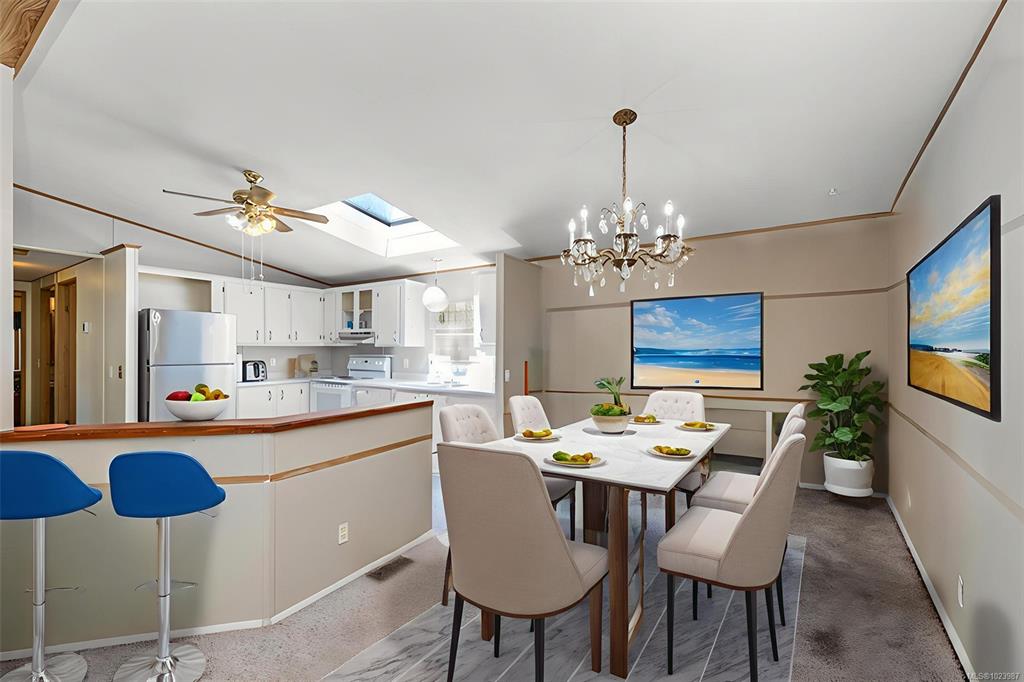 Welcome to this spacious and inviting double-wide manufactured home located in a well-maintained 55+ mobile home park. No Pets and No Rentals insure peace and quiet. Home features Valuted Ceilings in Living room, Dining room and Kitchen creating a bright and airy open concept. The generous primary bedroom offers a peaceful retreat with its own 4-piece ensuite. An additional bedroom and a second 4-piece main bathroom provide plenty of space for guests or hobbies. In-home laundry adds extra convenience. Heat ...