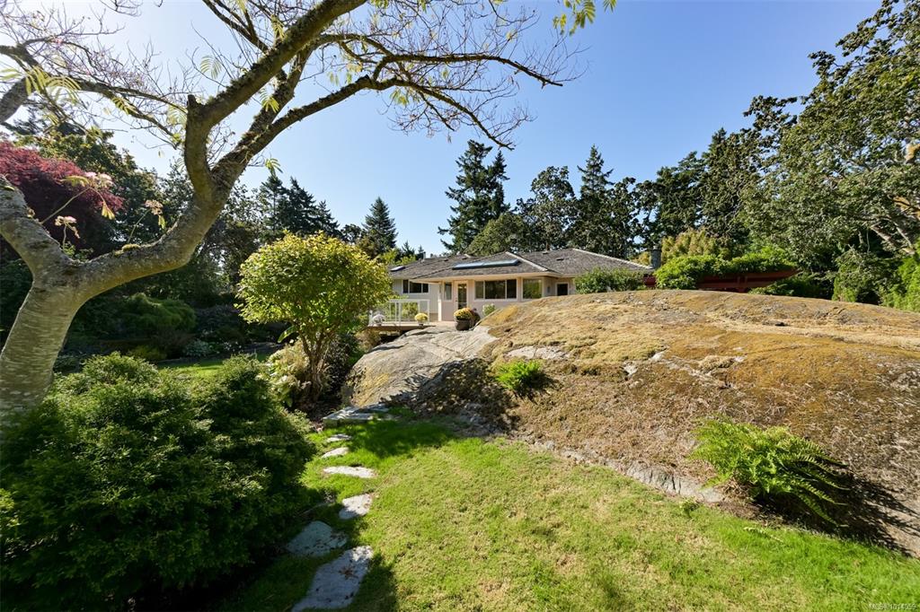Situated in the desirable Ten Mile Point area, this well-maintained home rests on a half-acre of landscaped, terraced grounds. The upper level offers 4 bedrooms and 3 bathrooms, while the lower level includes a 5th bedroom, additional bathroom, and spacious family room. The property features manicured gardens, cedar gates, stone terraces, and a newer deck, creating a private and inviting outdoor setting. Mechanics include gas fired hot water heat w/9 zone controls, a 5000 watt emergency generator system, ...