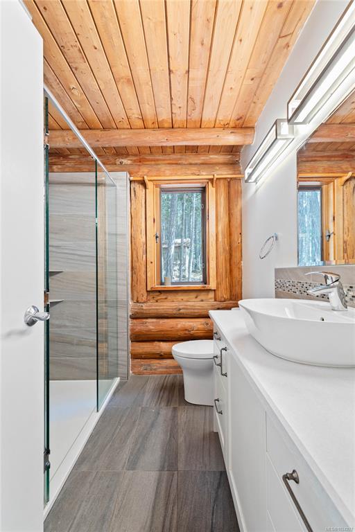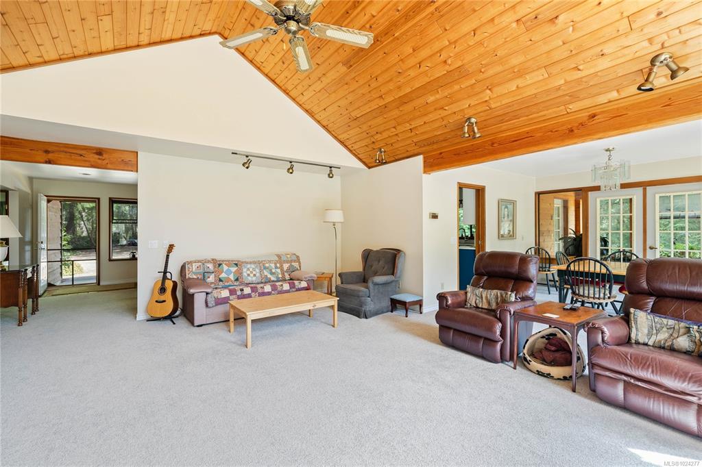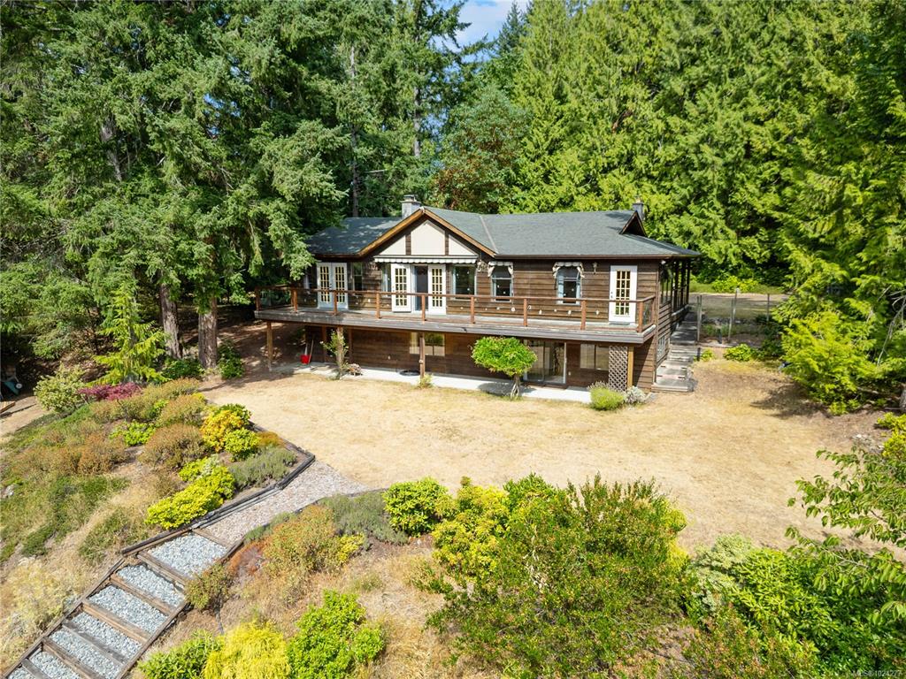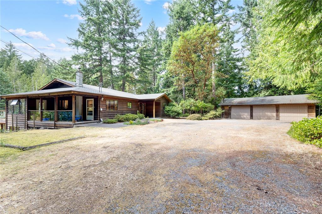 Your own secluded island sanctuary offered for the first time on the market. This outstanding estate is nestled on nearly 10 acres of sun-drenched, private land, with nearby shoreline access via the scenic Jack Foster Trail bordering the property. The well maintained, thoughtfully designed home harmonizes beautifully with its natural surroundings, offering efficient main-level living and stunning views over a large pond, lush perennial gardens, and fruit trees. West Coast charm shines with wood accents, vau...