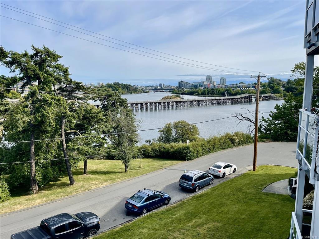 Water views across from a park! Updated 1 bed, 1 bath Ocean Manor condo provides quiet, scenic residence. The perfect combination of character and convenience, this 3rd floor Ocean Manor condo offers breathtaking views of Victoria Harbour, Selkirk Trestle and downtown. Inside the condo is an inviting floorplan with dining area, spacious living room, updated bathroom and kitchen. The bedroom features ample daylight and a generous closet. The efficient kitchen has quartz countertops, painted wood and glass ca...