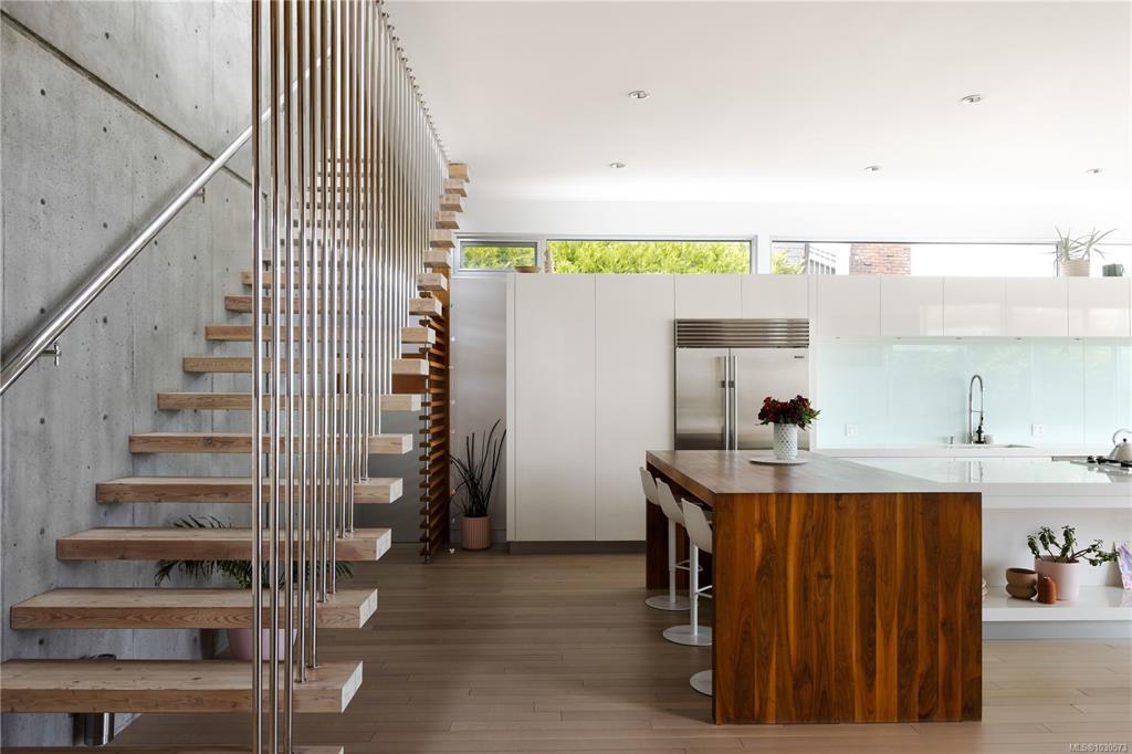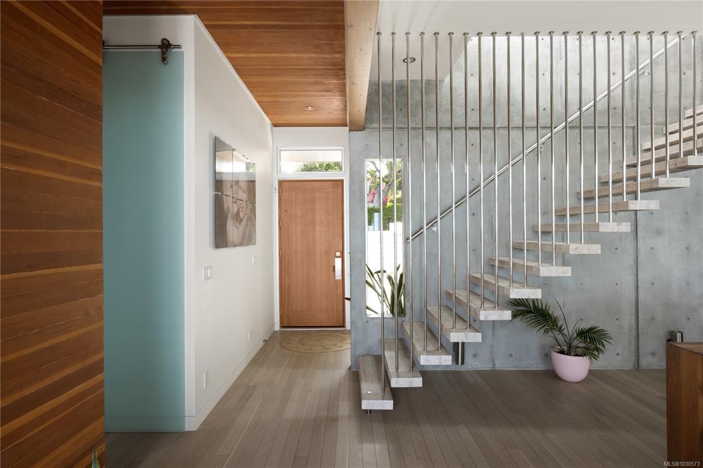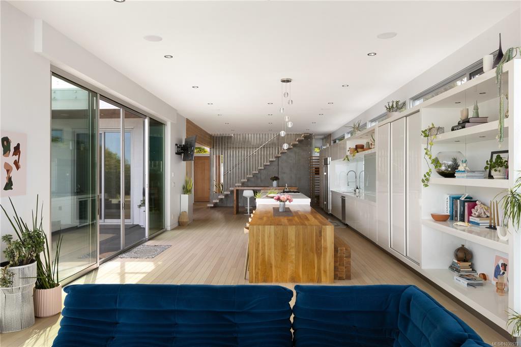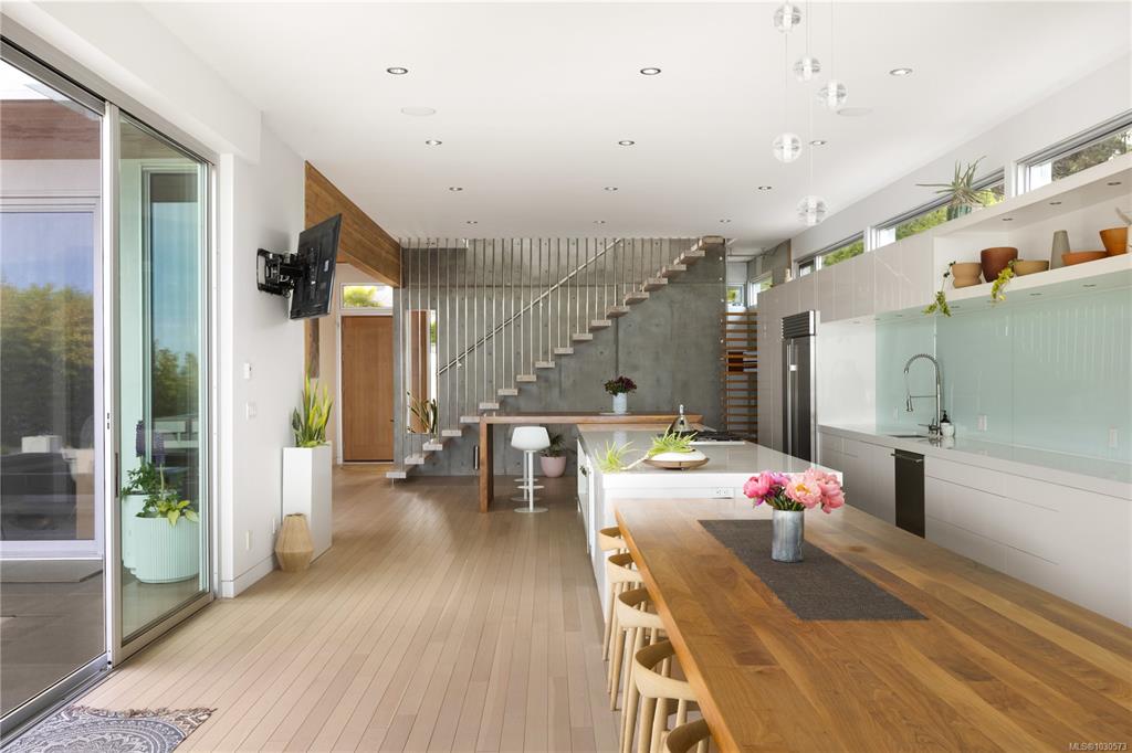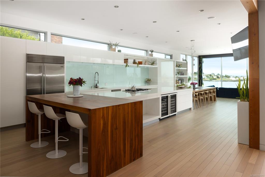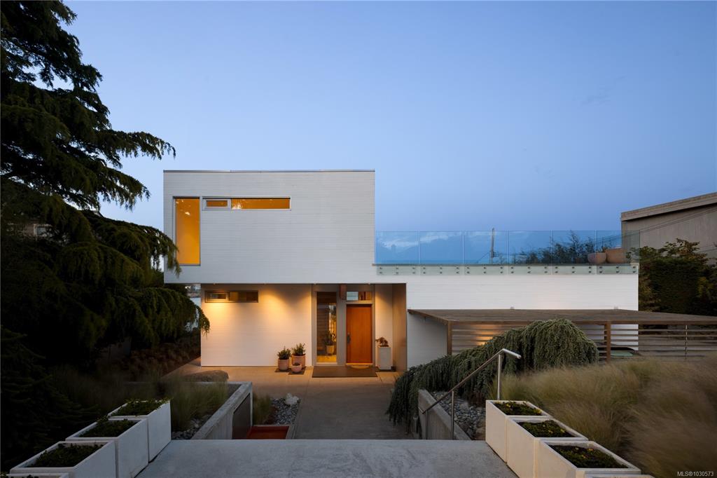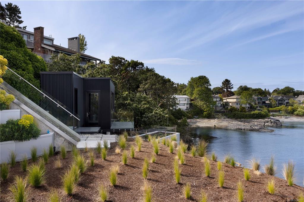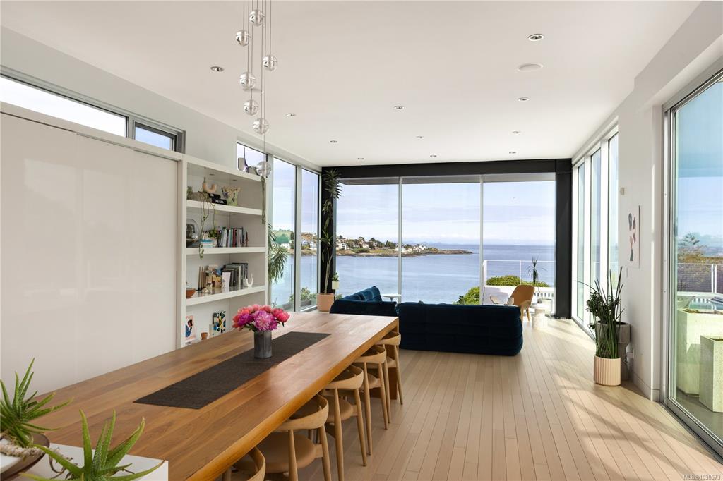 A striking example of modern minimalism perched on the southern edge of Oak Bay, this custom-built oceanfront residence offers panoramic views from nearly every room. Designed for seamless indoor-outdoor living, the main floor boasts 11’ ceilings and expansive glass walls that open onto multiple patios, a sleek swimming pool, and a dedicated gym/studio. The chef’s kitchen features integrated appliances and a massive island perfect for entertaining. Upstairs, the serene primary suite includes a walk-in close...