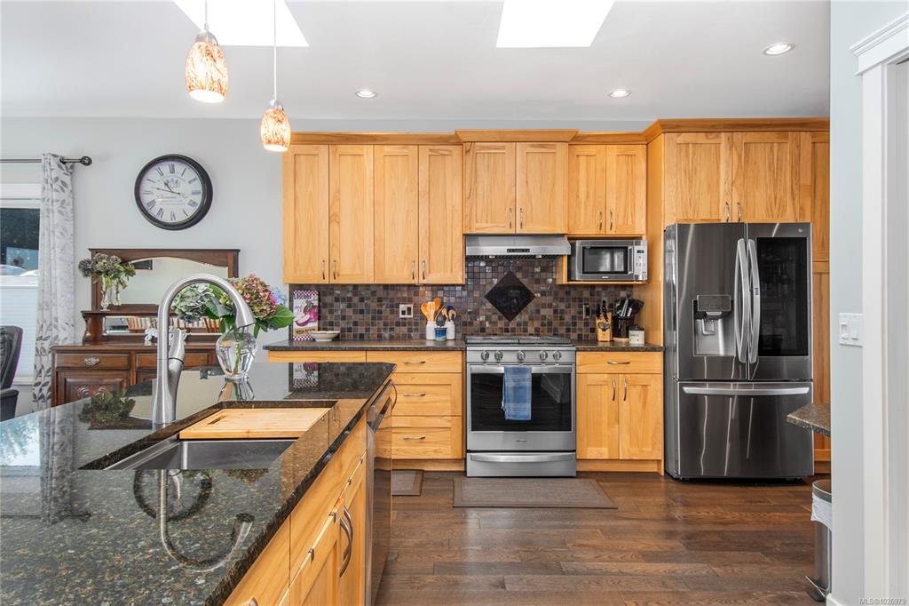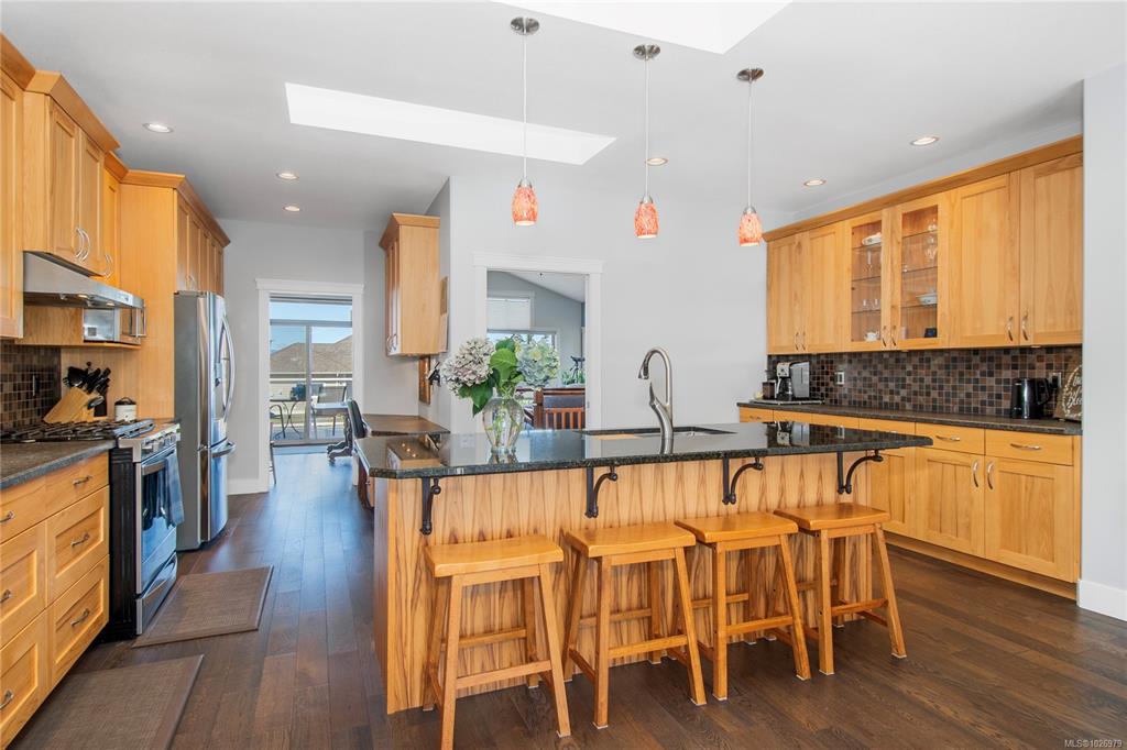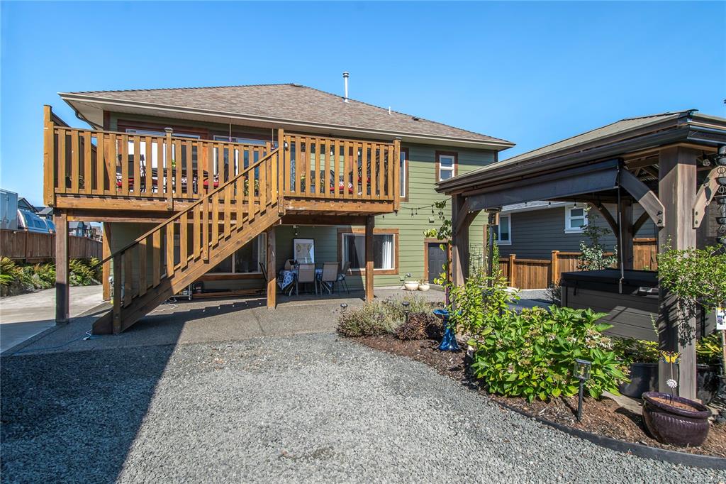 Welcome to 2953 Pacific View Terrace, a beautifully crafted home offering space, comfort, and ocean views. Upstairs features a well-designed kitchen with ample storage and a large island perfect for family gatherings. The dining area opens to a back deck for alfresco meals, while the spacious living room leads to a front deck with stunning views. The primary bedroom includes a walk-in closet and 4-piece ensuite, accompanied by two additional bedrooms. Downstairs offers a large family room ideal for movie ni...
