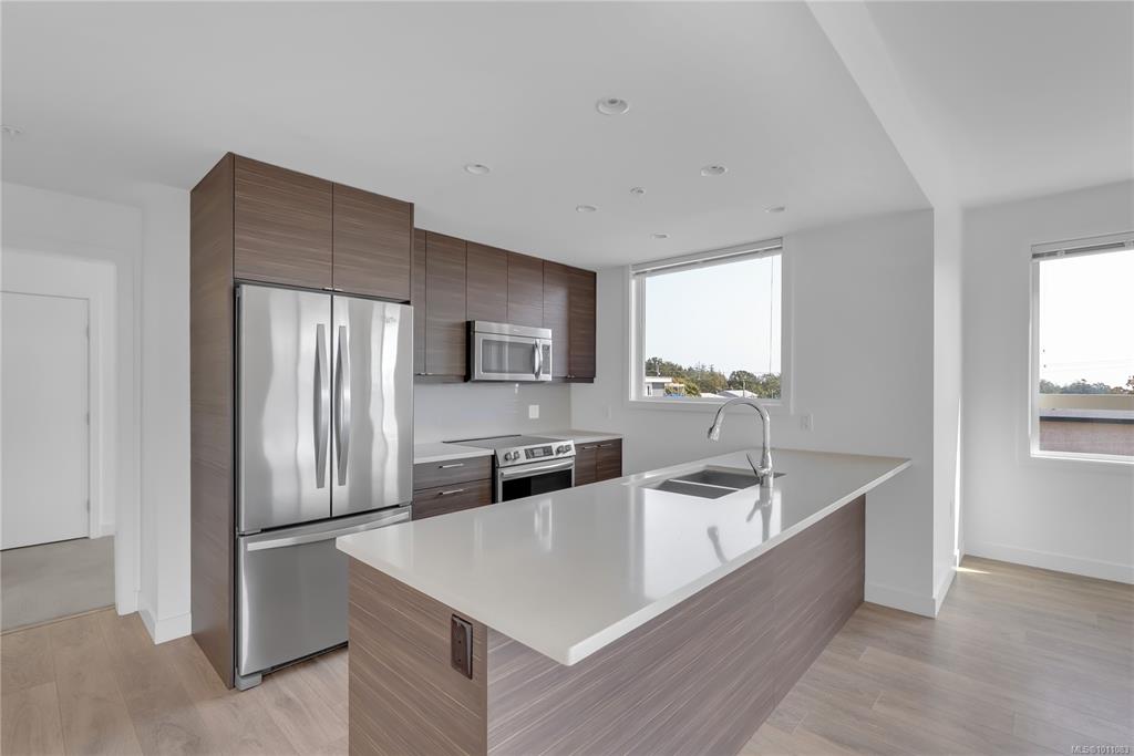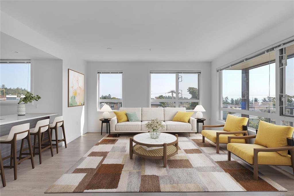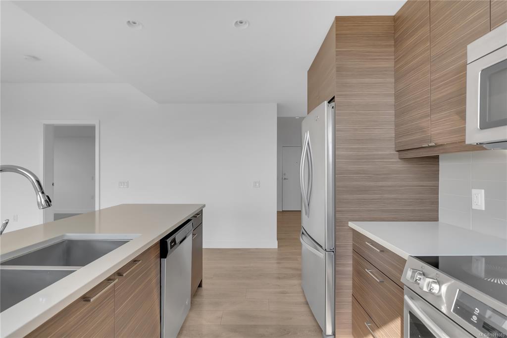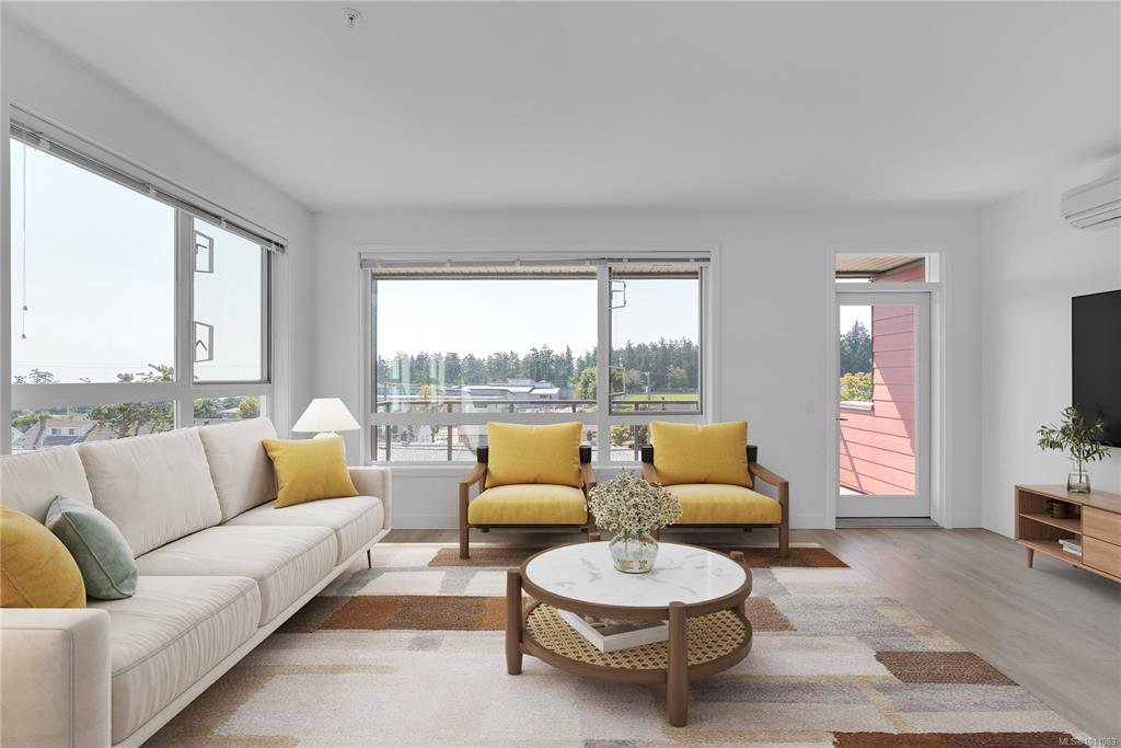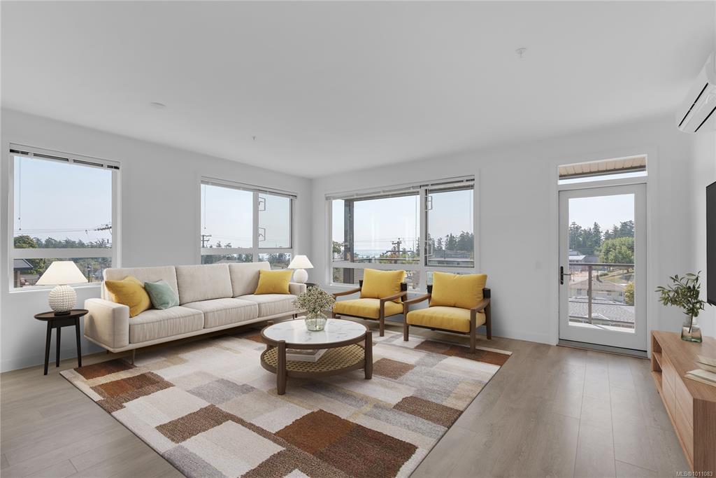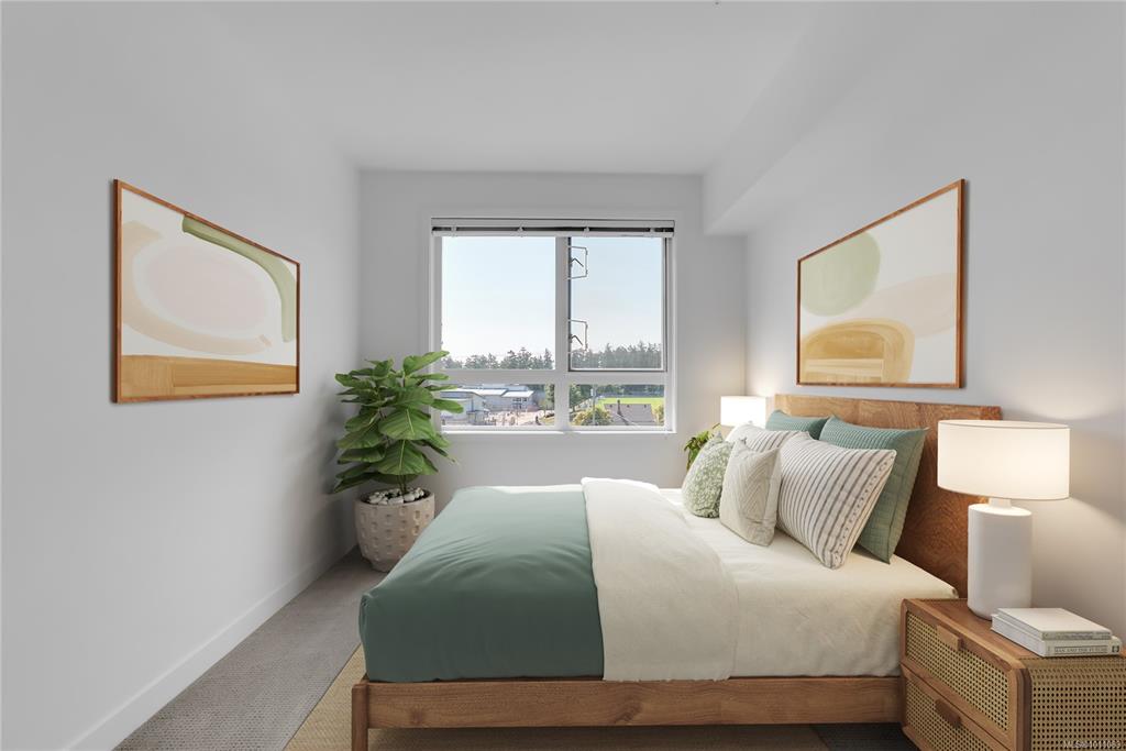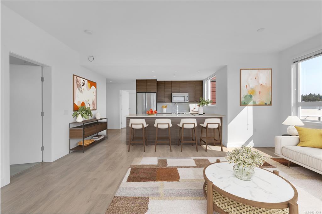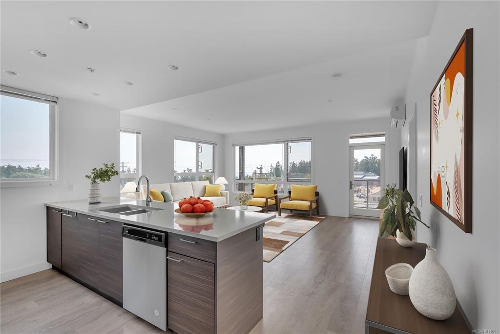 Pacific View delivers Westshore living at its best with this sun-soaked 2 bedroom, 2 bathroom corner suite showcasing distant ocean & mountain views from a large, covered south-facing deck. Inside, the airy open-concept layout is enhanced by soaring ceilings and massive windows, while the gourmet kitchen features wide quartz counters, stainless steel appliances and an extended eating bar made for entertaining. The spacious living area flows beautifully to the outdoor space, creating a true indoor-outdoor fe...