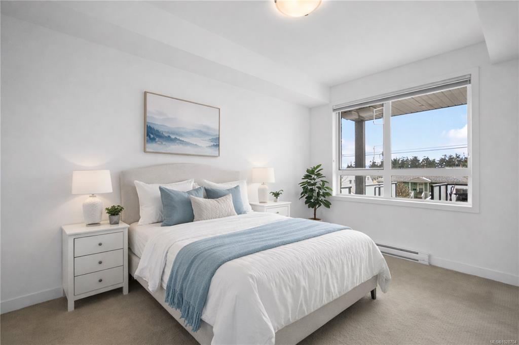 **OPEN HOUSE, SAT 12-2**Townhome vibes, condo convenience! This bright stylish 2 bed, 2 bath home offers its own private exterior entrance and a efficient layout. Enjoy 9’ ceilings, a sleek kitchen with large eating bar, stainless steel appliances, and quartz countertops. Both bedrooms are generously sized with ample closet space, and the primary features a 4-piece ensuite. Stay comfortable year-round with an energy-efficient heat pump providing heating and cooling. The sunny southwest-facing patio is perfe...