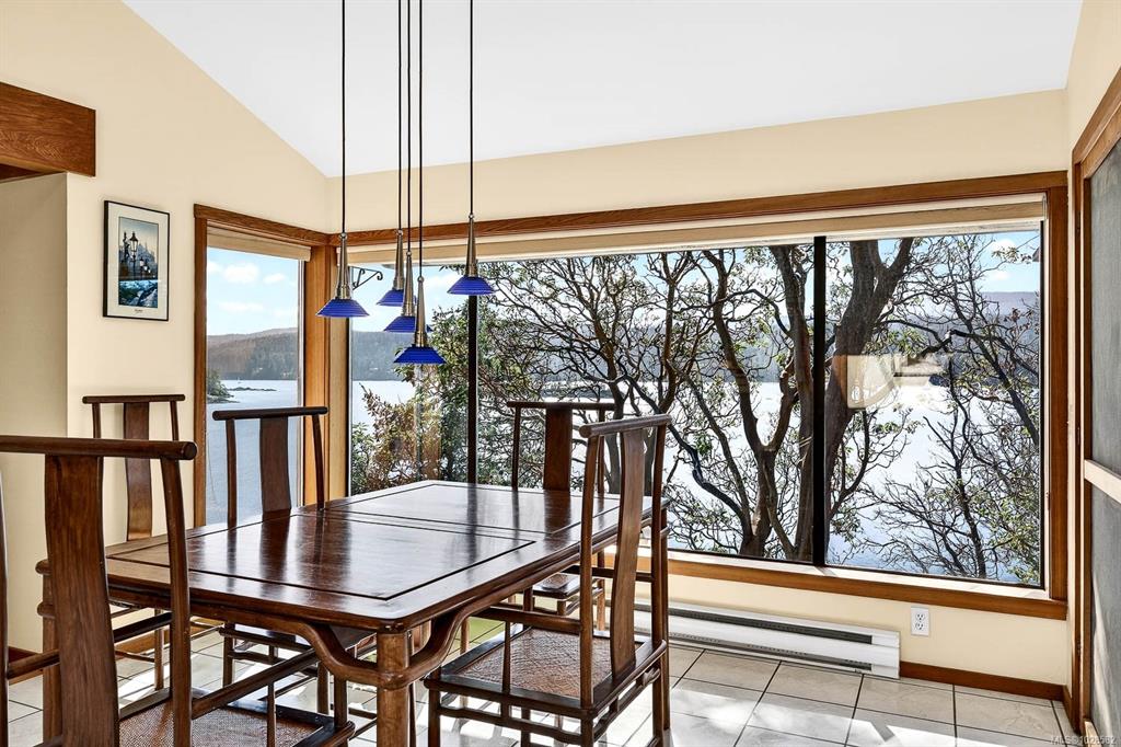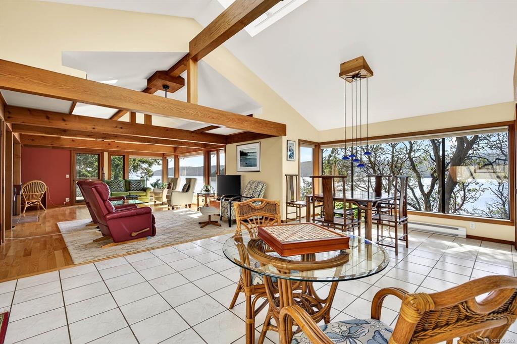 An idyllic 1.82-acre south-facing waterfront oasis with breathtaking sunrise-to-sunset views stretching from Ganges Harbour to the Sister Islands, across Chocolate Beach and out to the shimmering Salish Sea. Perfectly positioned near the shoreline, the immaculate Schubart-designed coastal home is filled with natural light from dramatic floor-to-ceiling windows and skylights that showcase the seascape from nearly every room. Featuring a vaulted ceiling, newer metal roof, heat pump, cozy woodstove, a spacious...