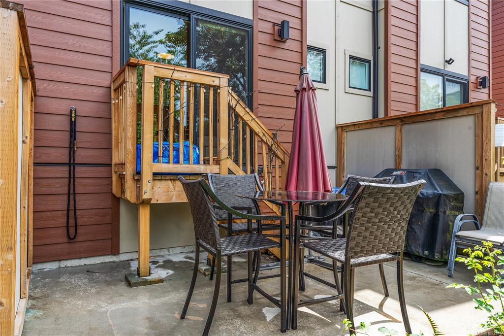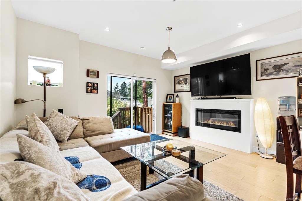Welcome to Parkland Townhomes,where contemporary West Coast design meets everyday comfort in the heart of Langford.Built in 2018, this thoughtfully crafted home showcases impressive 11-foot ceilings in the upper-level bedrooms,creating a bright and airy retreat that sets this residence apart.The main floor welcomes you with engineered wood flooring and high-end finishes.The chef-inspired kitchen is a true highlight,featuring sleek quartz countertops, premium stainless steel appliances, & modern fixtures—per...