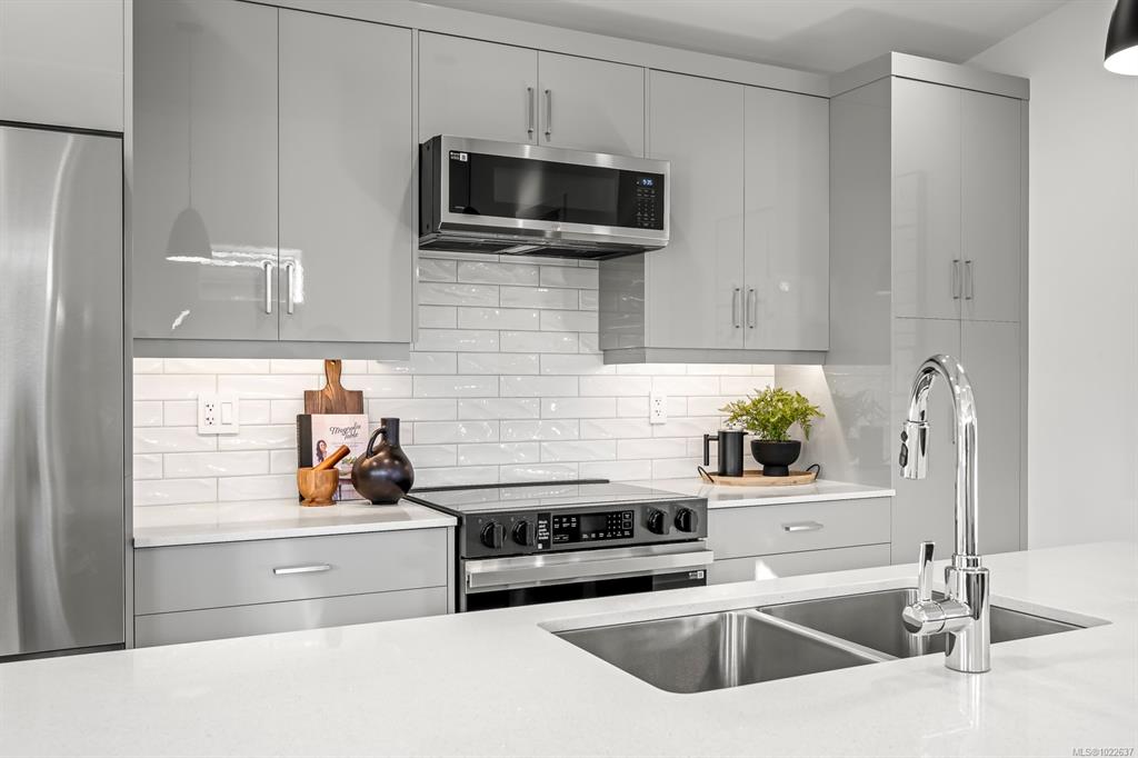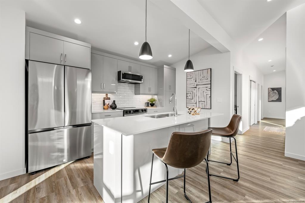 New and improved! This is a Phase 2 Lewis plan spanning 1,104 sq ft, with 2 bedrooms, 1 bathroom and boasting a dreamy south-facing private covered patio. You'll love the open concept kitchen dining layout with soaring 11 '7" ceilings, tasteful fixtures and accents throughout, modern high gloss grey kitchen cabinets, full appliances, tiled backsplash and quartz countertops. Large laundry room with sink and upper cabinets. Vaulted ceilings continue through to the bedrooms with large windows giving plenty of ...