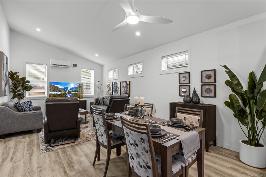 Beautiful manufactured home in The Flats in Cumberland with no GST and built to stand out. Constructed on site by Orca of Courtenay, an industry leader in steel framed homes, this one owner Northern Flicker model was a previous show home and showcases quality, efficiency, and thoughtful design throughout. Offering over 1,200 sq ft on a crawl space, the bright, open layout features vaulted ceilings, a spacious primary suite, large second bedroom, two bathrooms, and a seamless kitchen, living, and dining area...