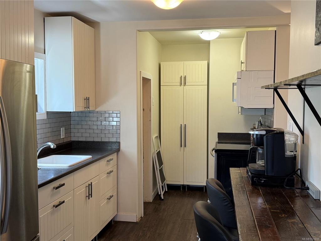 Central Nanaimo CHARACTER HOME. What a great place to get your start. This solid home has all the right ingredients with a good foundation & several upgrades. This adorable home features new roof & gutters with gutter guards (2 yrs), upgraded Ikea kitchen, new (2yrs) High efficiency gas furnace, On demand gas hot water & Central AC. Plus most windows have been upgraded to vinyl sash. The living room is a good size at 21' with an attractive brick F/P (best suited for gas or elec insert). One bdrm on the main...