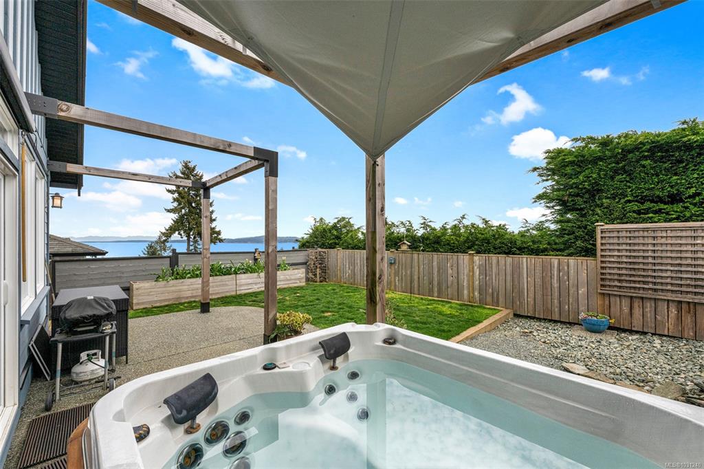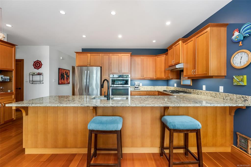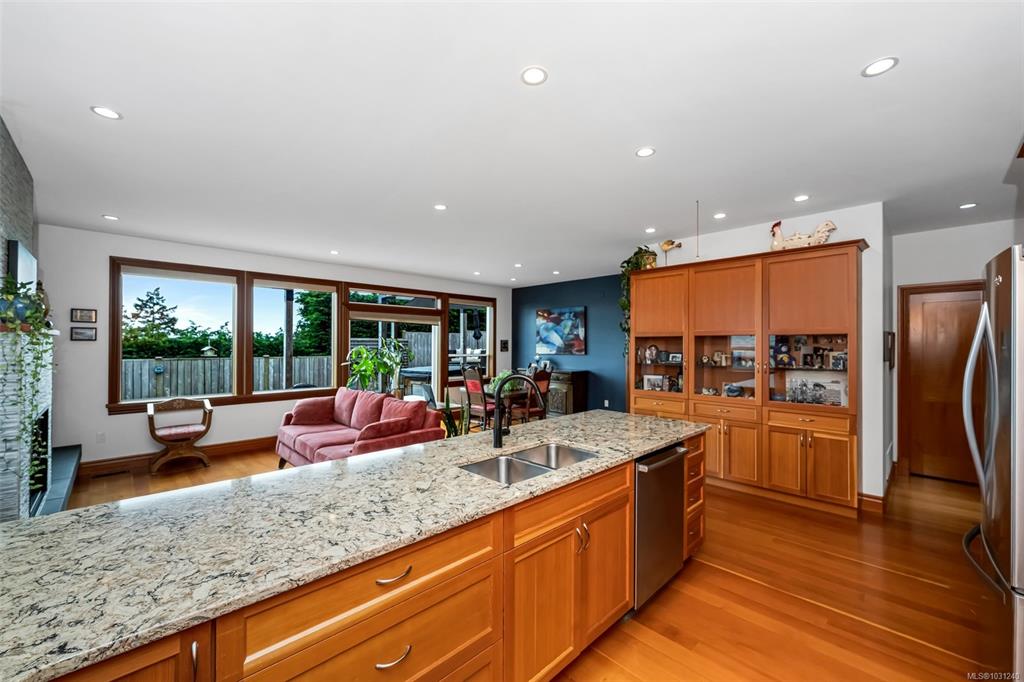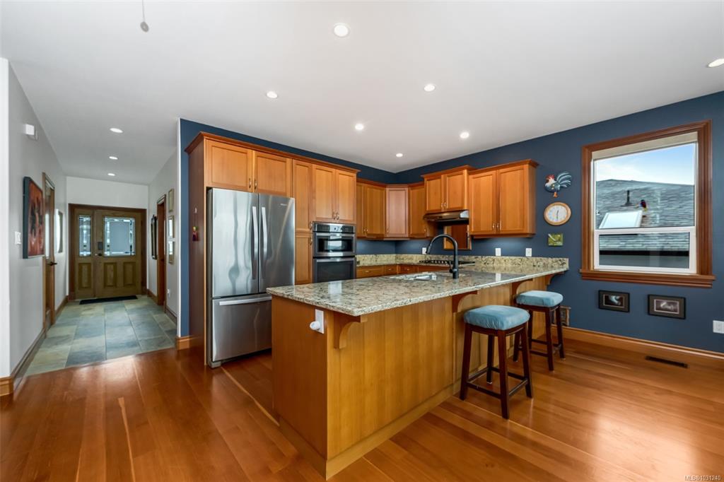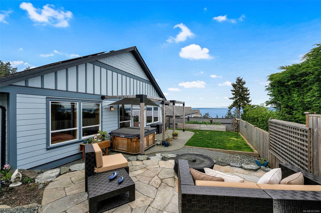 Custom-built ocean view rancher just a short walk to the shoreline! This stunning 3-bedroom, 2-bathroom home offers a bright open-concept design, seamlessly connecting the kitchen, living, and dining area. A cozy gas fireplace anchors the space, while expansive windows capture beautiful views over Stuart Channel and fill the home with natural light. The home features rich fir flooring, edge-grain fir doors, and custom fir cabinetry, all complemented by elegant granite countertops. Every finish reflects top-...