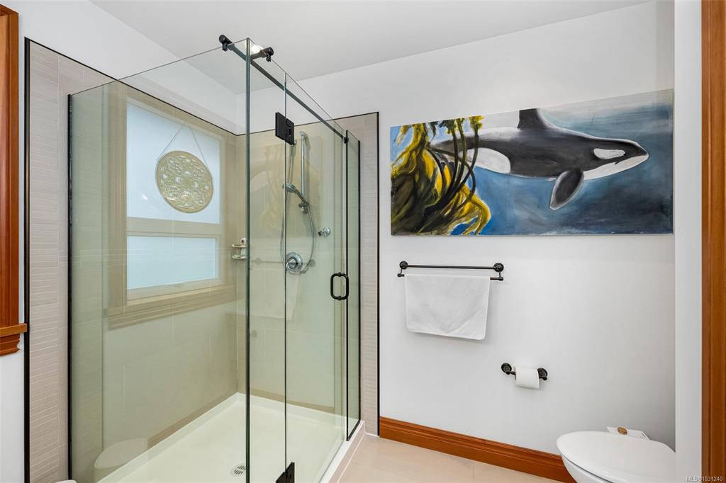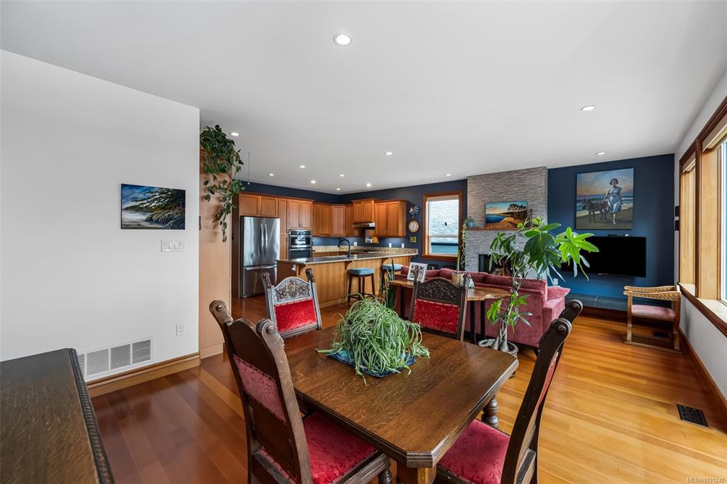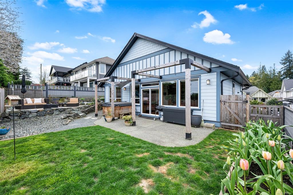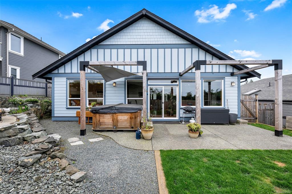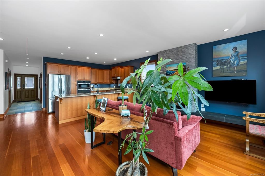 Custom-built ocean view rancher just a short walk to the shoreline! This stunning 3-bedroom, 2-bathroom home offers a bright open-concept design, seamlessly connecting the kitchen, living, and dining area. A cozy gas fireplace anchors the space, while expansive windows capture beautiful views over Stuart Channel and fill the home with natural light. The home features rich fir flooring, edge-grain fir doors, and custom fir cabinetry, all complemented by elegant granite countertops. Every finish reflects top-...
