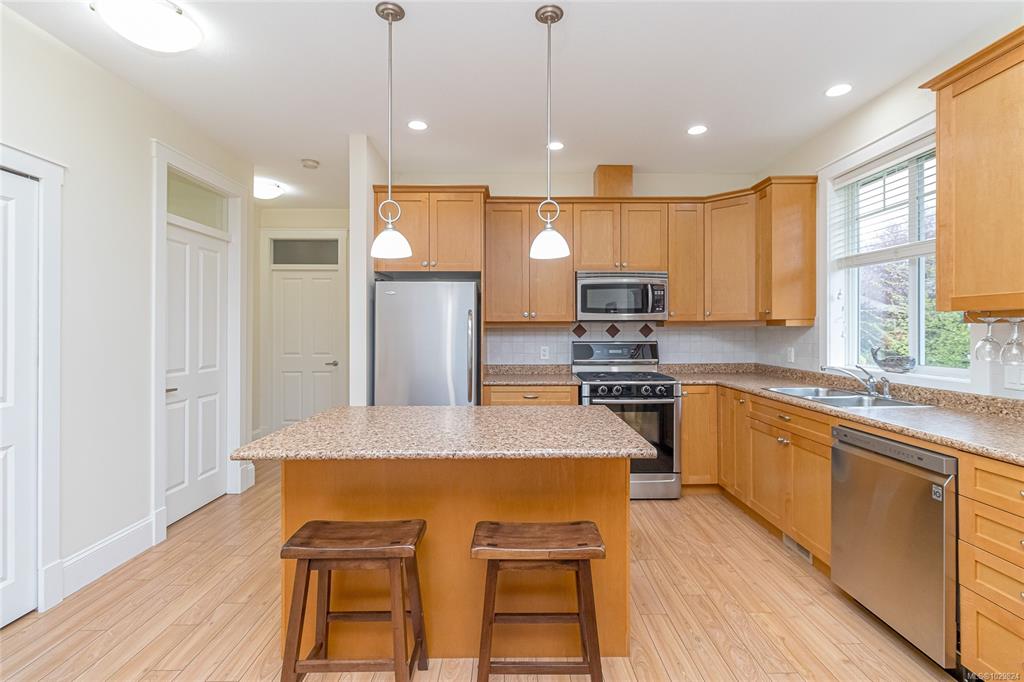 Elegant 2 bedroom, 2 bathroom 1098 square foot patio home close to the beach in the lovely seaside village of Chemainus. From your kitchen with it's maple cabinets and work island you can enjoy visiting with others because of the open concept design and access through to the patio doors and nice deck space. The high vaulted ceiling add lots of light makes for such a bright home. Add in the natural gas fireplace which is visible from the kitchen, and eating area as well as the living room and you have a very...