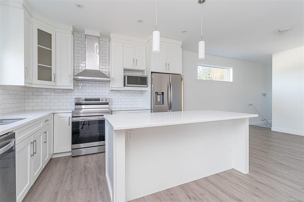 Welcome to this well-designed 2021 home. With over 2,400 sq ft, it includes 4 bedrooms + flex room and 4 bathrooms, with a 1 bedroom ground level suite with private laundry. Bright natural light highlights the thoughtful layout throughout. The main living area features an open concept kitchen with quartz tops, stainless steel appliances, a dining area and a spacious living room with a cozy gas fireplace. The primary bedroom includes a walk-in closet and 4-piece ensuite. Located above the garage, away from t...