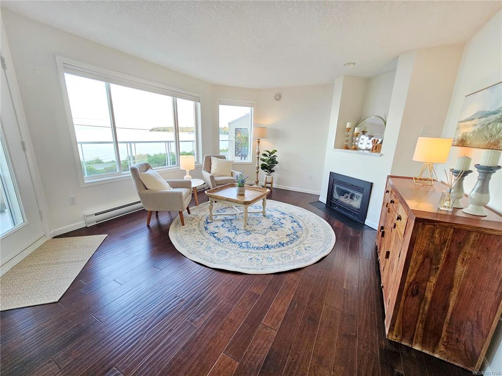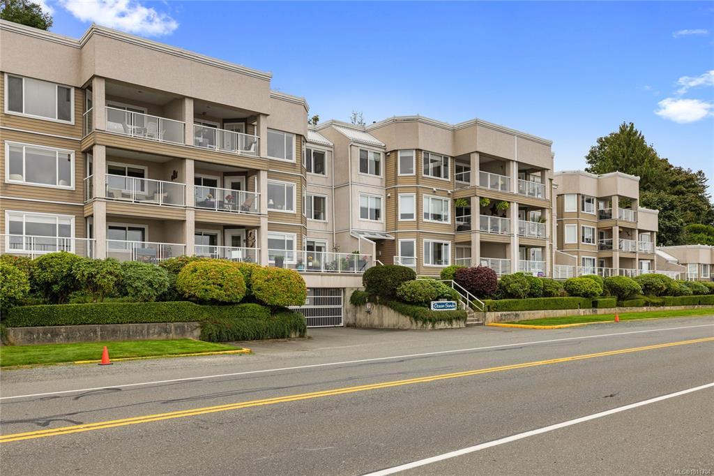 Oceanview Living in the Heart of Qualicum Beach. Enjoy retirement by the sea in this beautifully updated 2 bed, 2 bath condo offering 1,092 sqft of bright, coastal living. Just steps from the shoreline, this home boasts unobstructed ocean views and a spacious wrap-around patio extending from the primary bedroom to the kitchen, perfect for morning coffee, outdoor dining, or taking in breathtaking sunsets. The open concept layout features a cozy gas fireplace, and a generous storage room is located right ne...