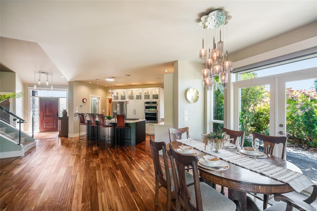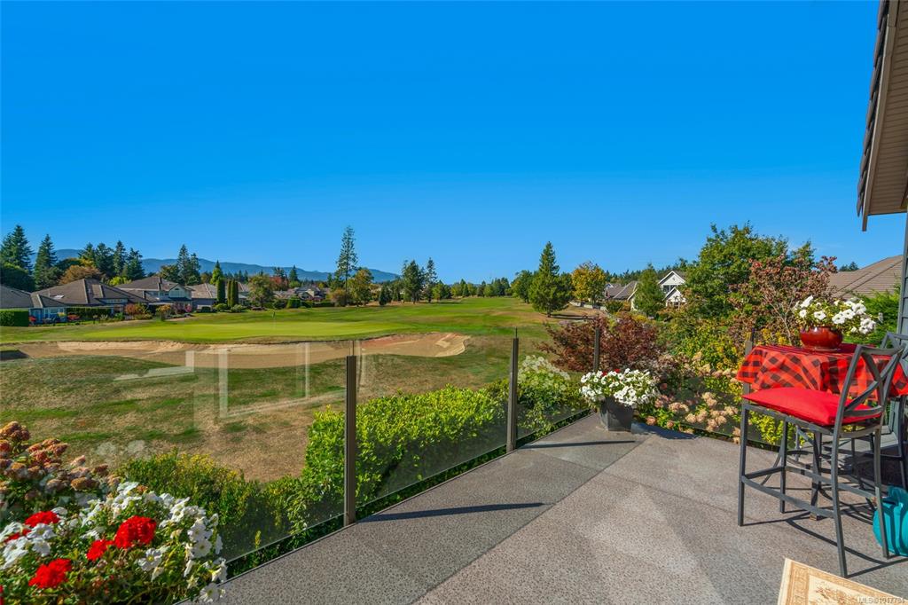 Exceptional custom-built home with stunning views of the 10th green, fairway, Comox Glacier, and surrounding mountains. Thoughtfully designed for comfort and elegance, this residence offers main-level living with soaring ceilings, modern lighting, and beautiful Acacia hardwood floors throughout. The chef’s kitchen features high-end appliances, quartz countertops, custom cabinetry, and a butler’s pantry. The open-concept living and dining areas flow to a private, landscaped backyard with a tranquil waterfall...